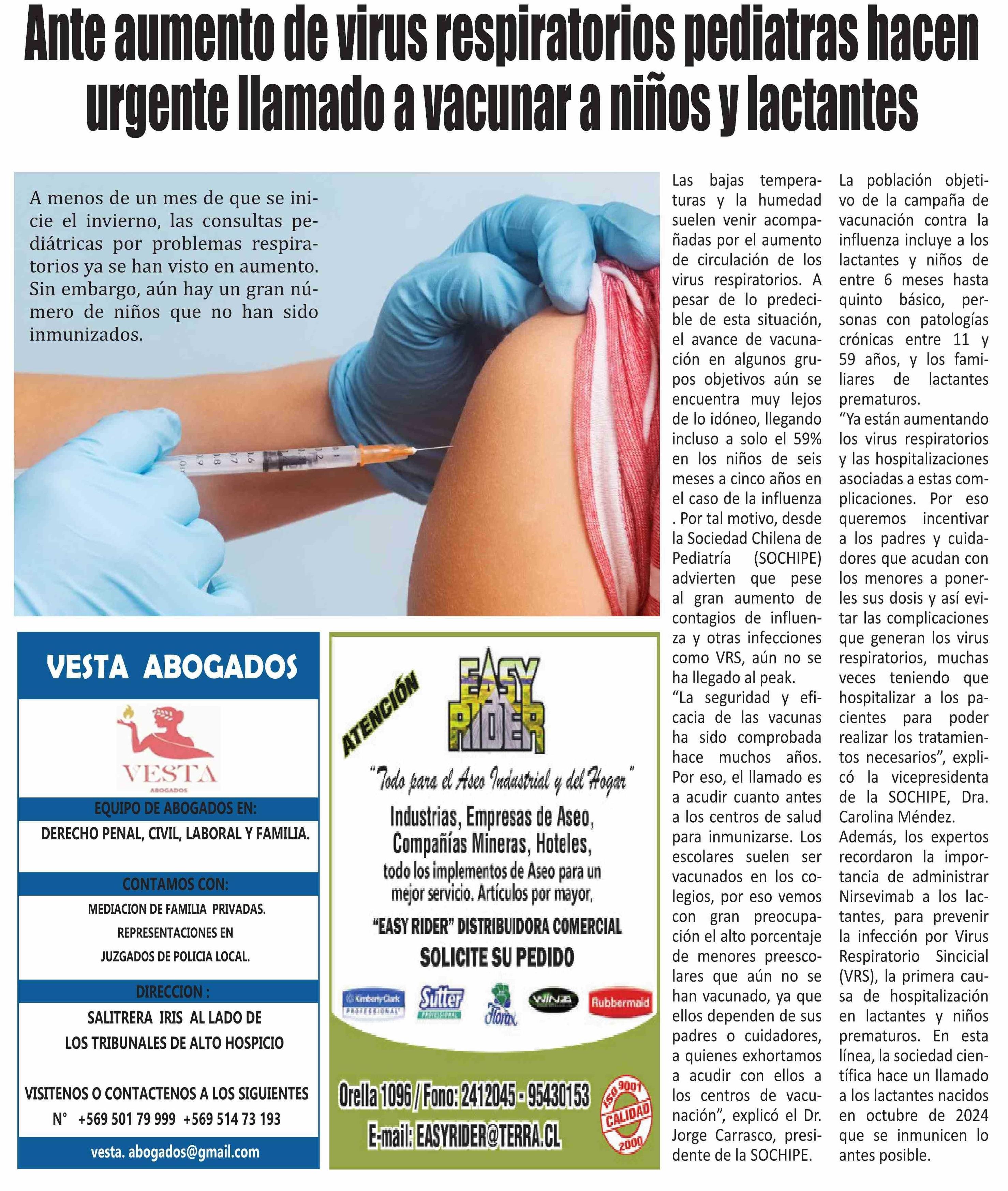 | Título: | Ante aumento de virus respiratorios pediatras hacen urgente llamado a vacunar a niños y lactantes |