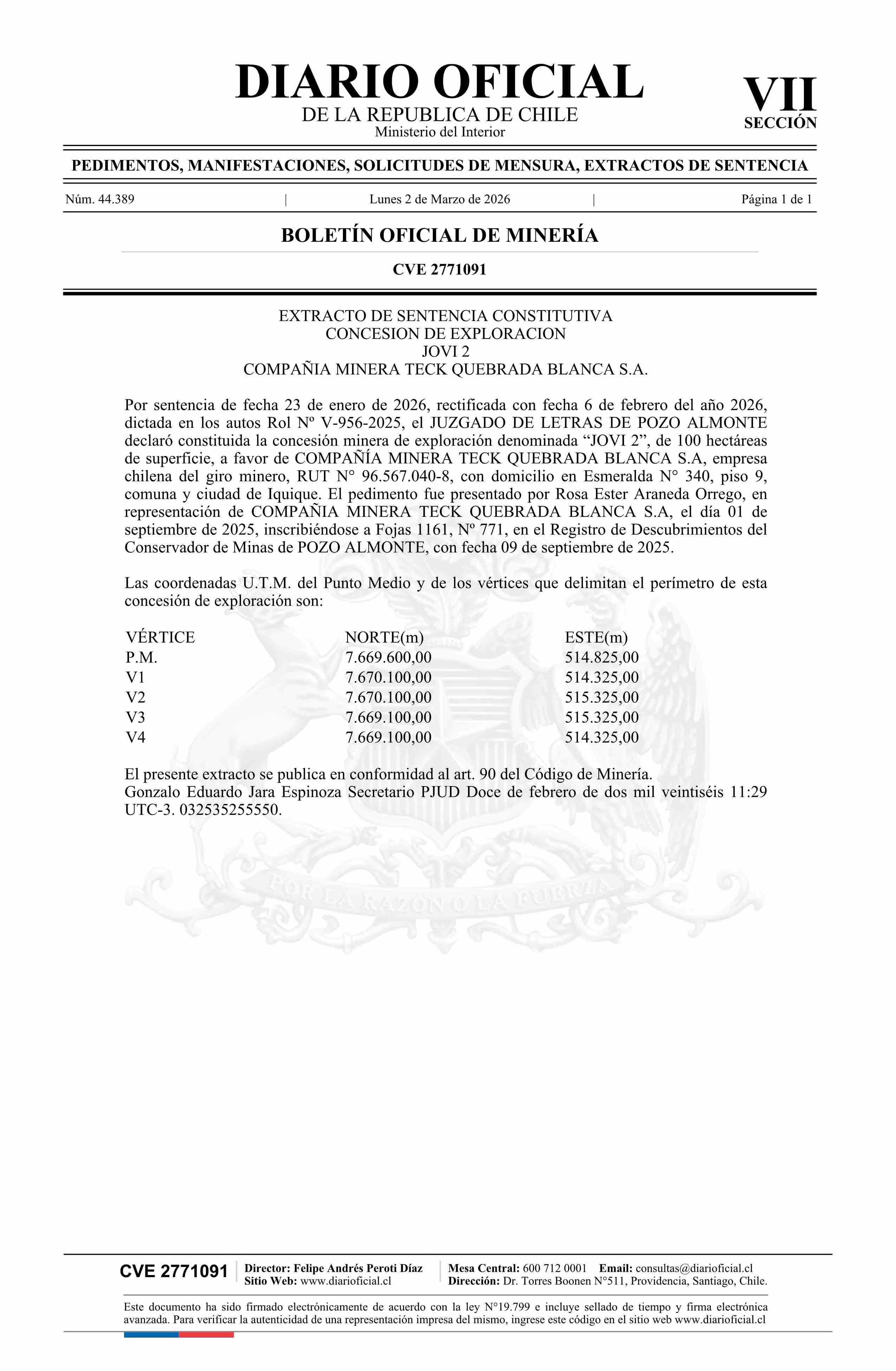 JOVI 2 / Compañía Minera Teck Quebrada Blanca S.A.