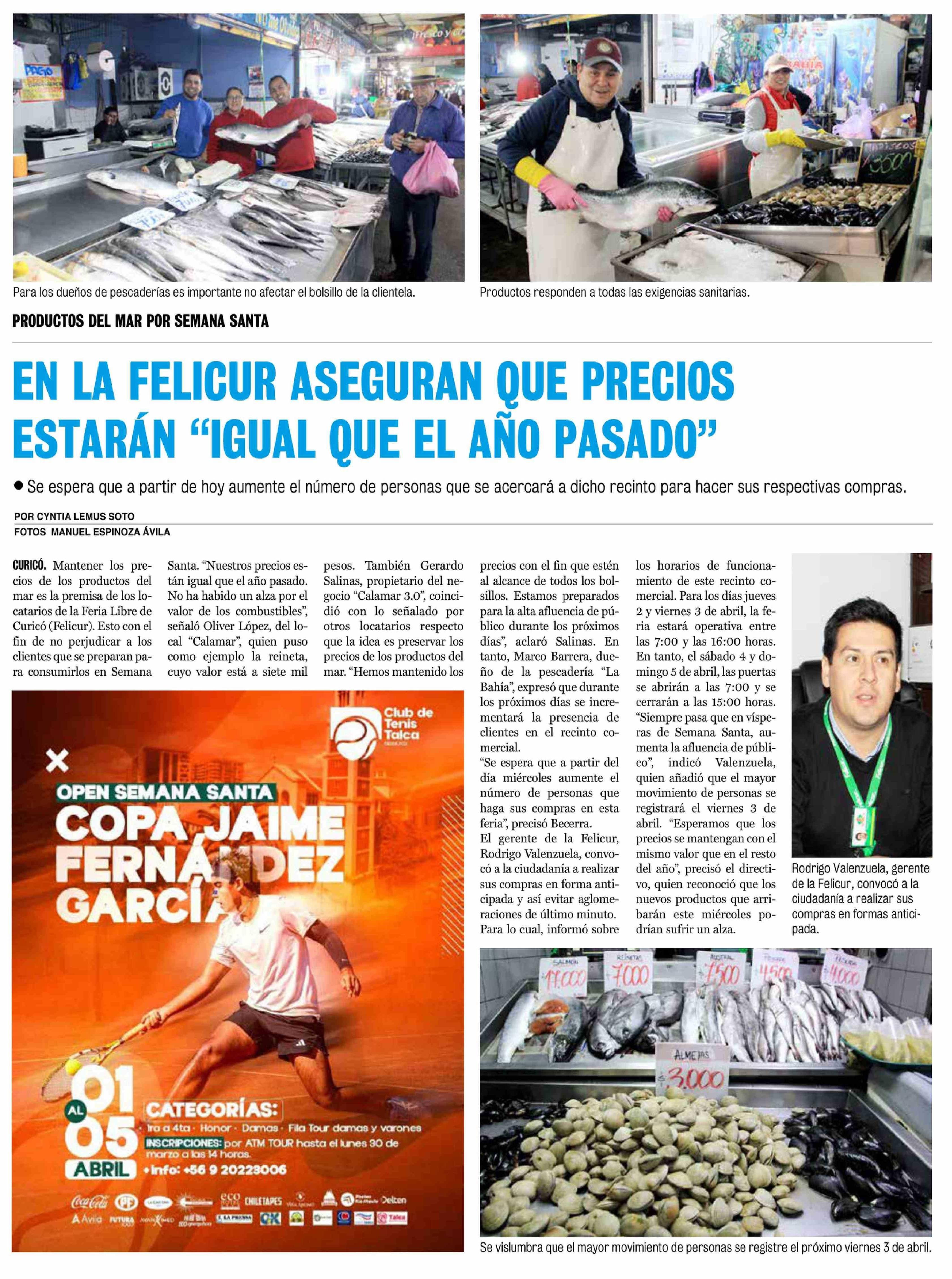 EN LA FELICUR ASEGURAN QUE PRECIOS ESTARÁN "IGUAL QUE EL ANO PASADO" 01-04-2026 La Prensa de Curicó |