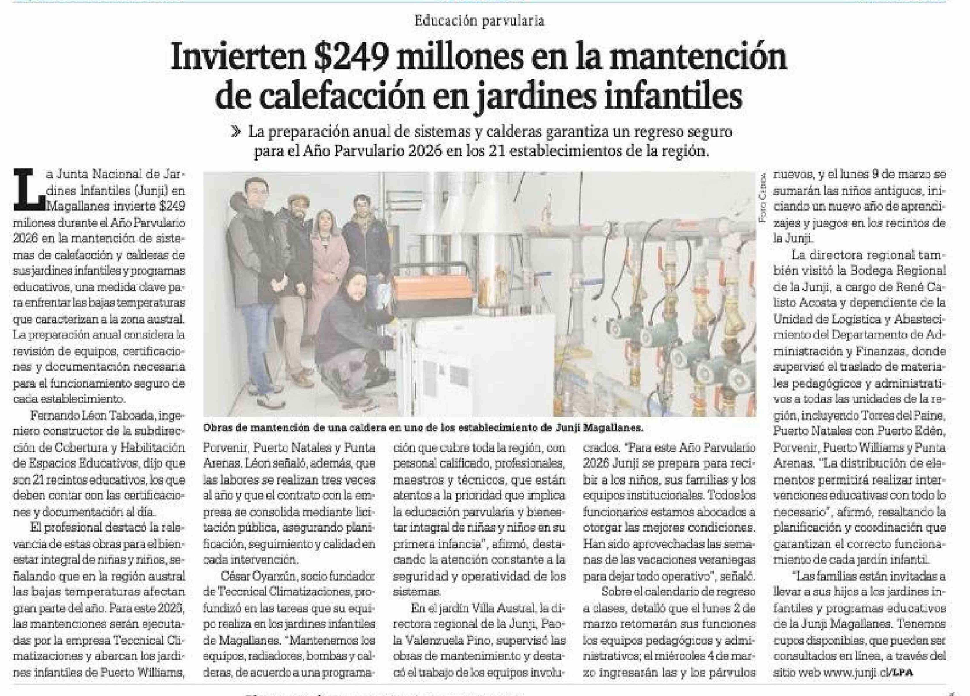 Invierten $249 millones en la mantención de calefacción en jardines infantiles 28-02-2026 La Prensa Austral |