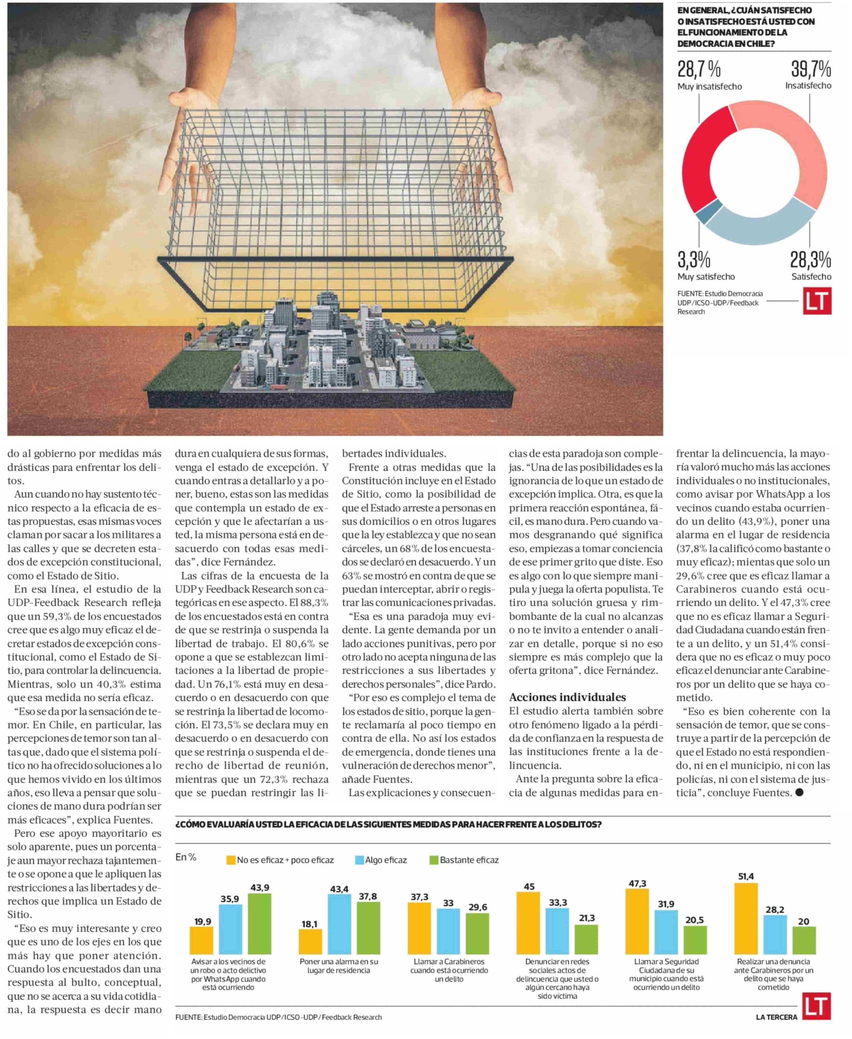 Chilenos pierden la fe en la democracia para enfrentar la delincuencia 31-08-2024 La Tercera |