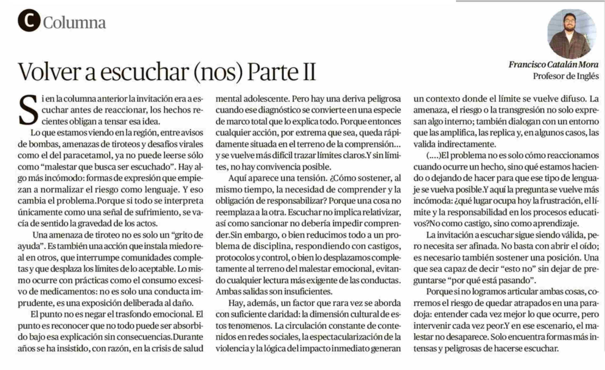 COLUMNAS DE OPINIÓN: Volver a escuchar (nos) Parte II 20-04-2026 Diario Austral Región de Los Ríos |