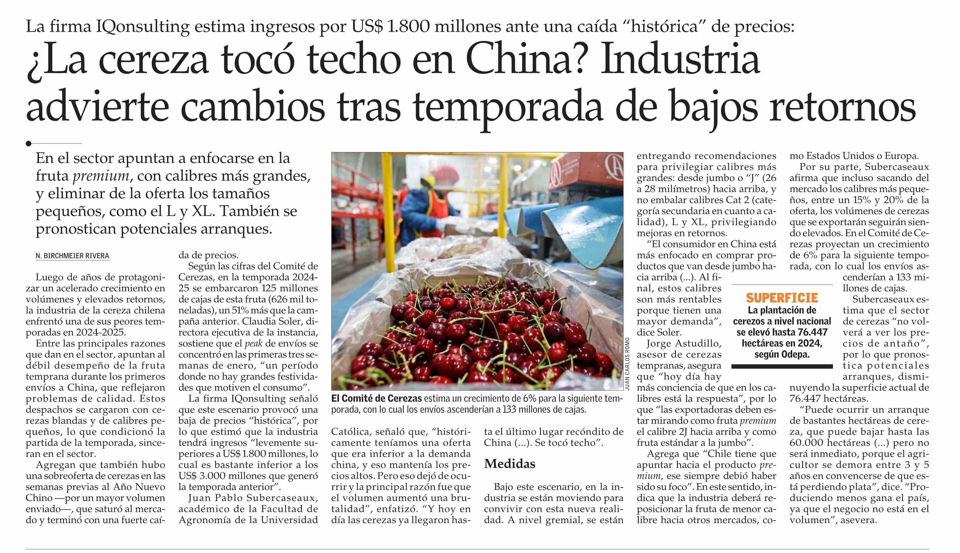 Título: ¿La cereza tocó techo en China? Industria advierte cambios tras temporada de bajos retornos