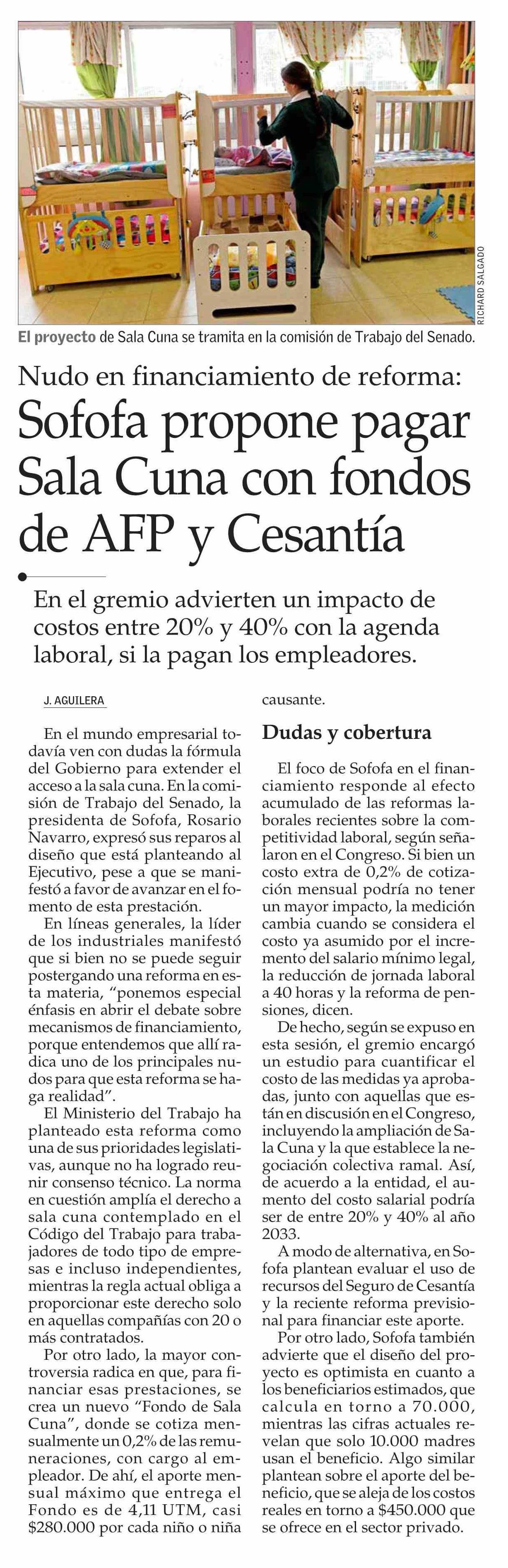 | Título: | Sofofa propone pagar Sala Cuna con fondos de AFP y Cesantía |