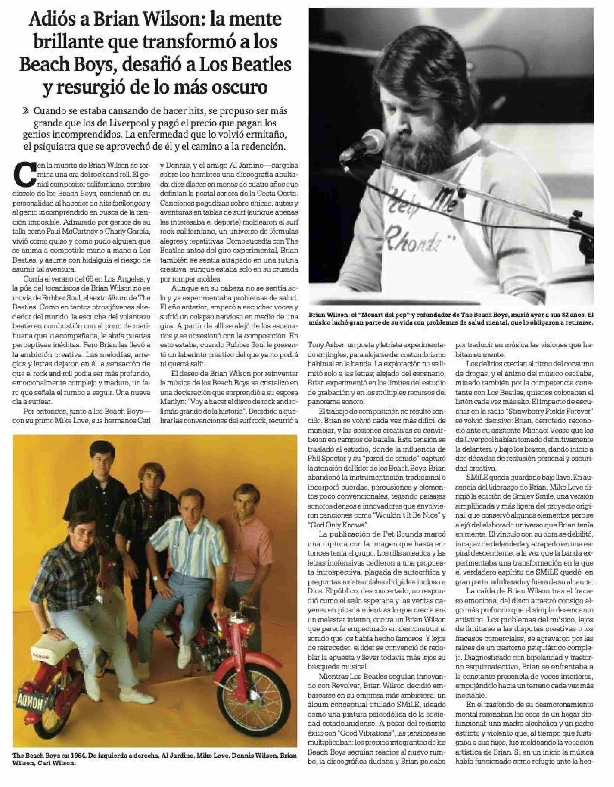 Adiós a Brian Wilson: la mente brillante que transformó a los Beach Boys, desafió a Los Beatles y resurgió de lo más oscuro 12-06-2025 La Prensa Austral |