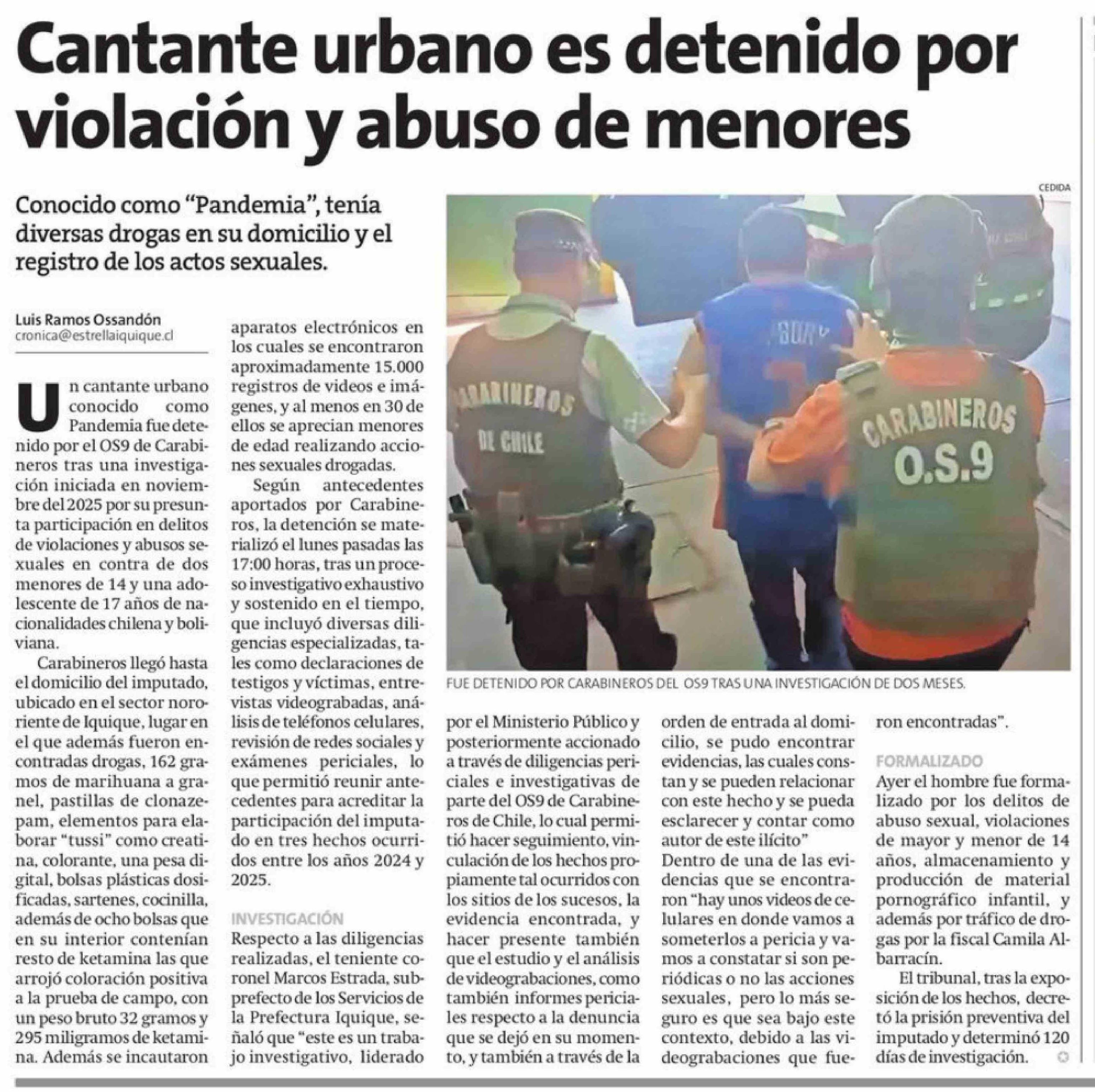 Cantante urbano es detenido por violación y abuso de menores 04-02-2026 La Estrella de Iquique |