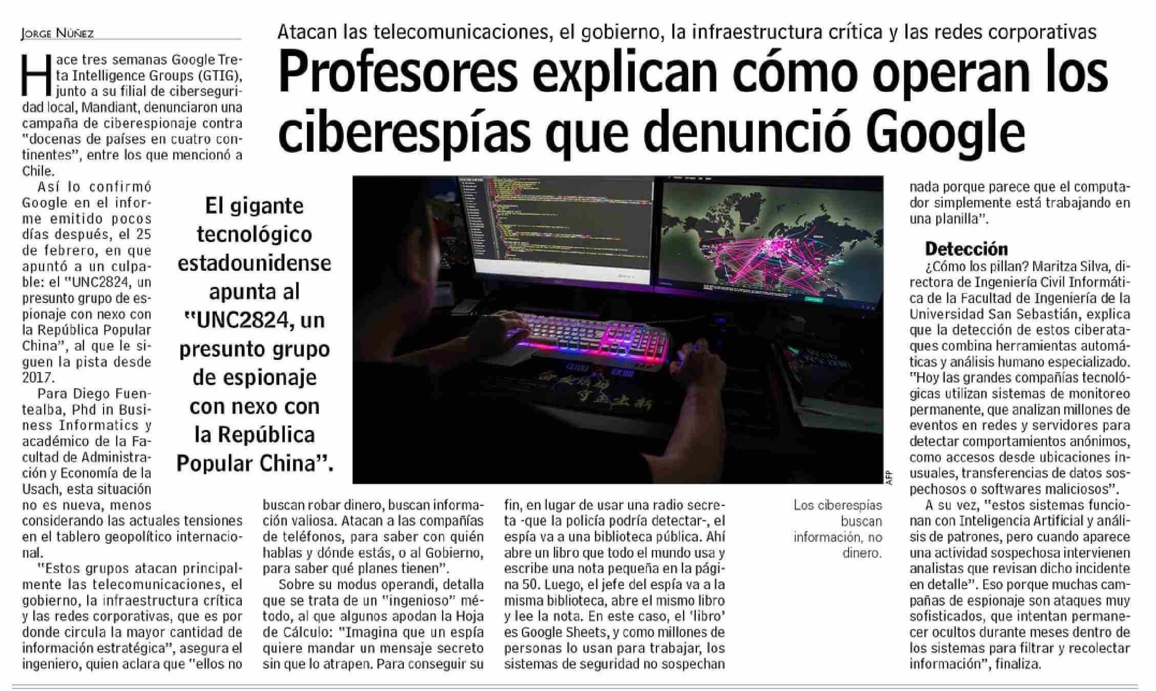 Profesores explican cómo operan los ciberespías que denunció Google 12-03-2026 Las Últimas Noticias |