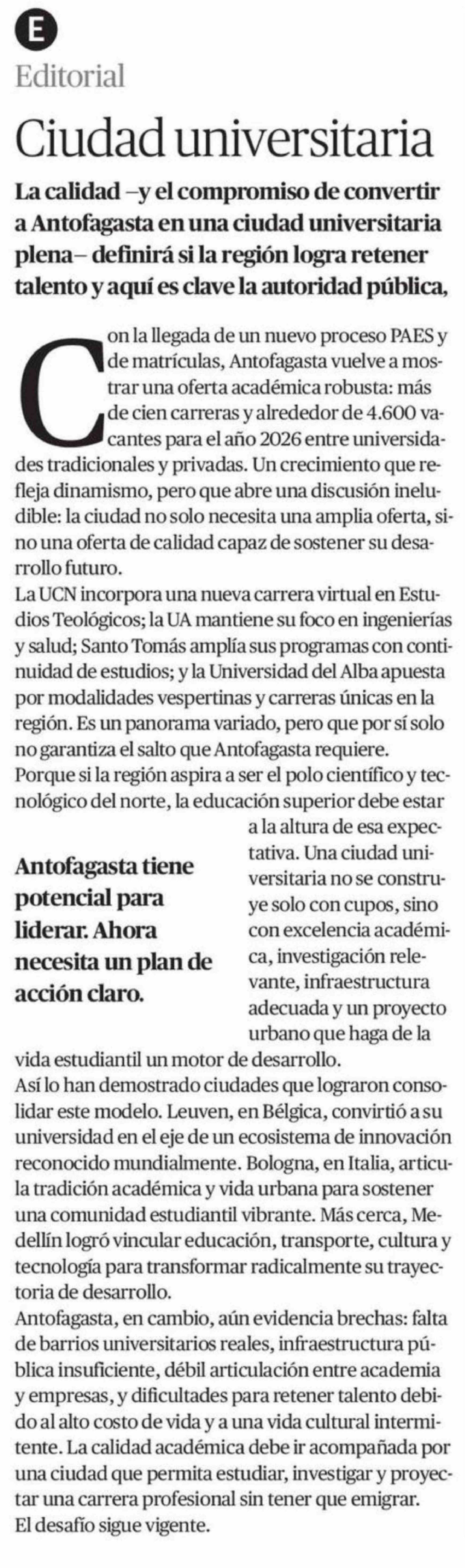 Editorial: Ciudad universitaria 01-02-2026 El Mercurio de Antofagasta |