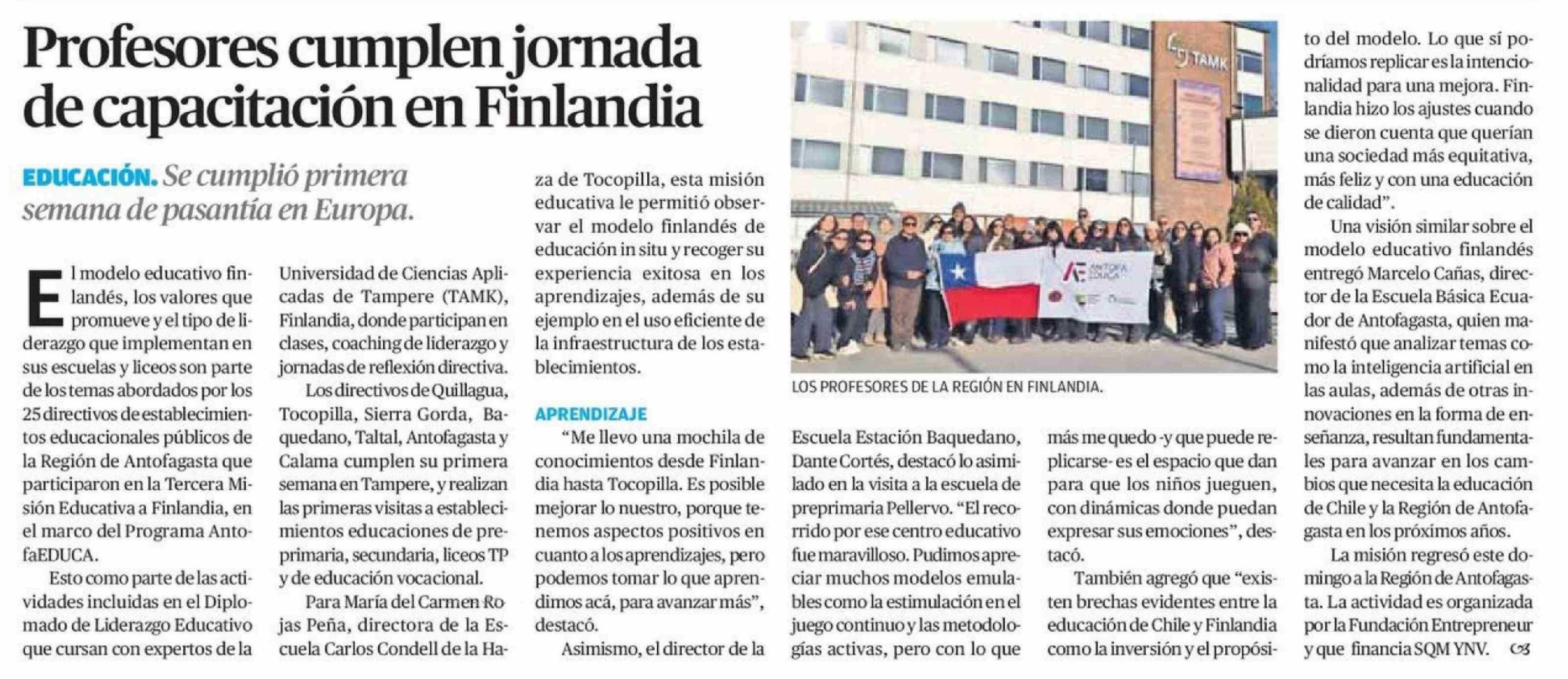 Profesores cumplen jornada de capacitación en Finlandia 21-04-2026 El Mercurio de Calama |