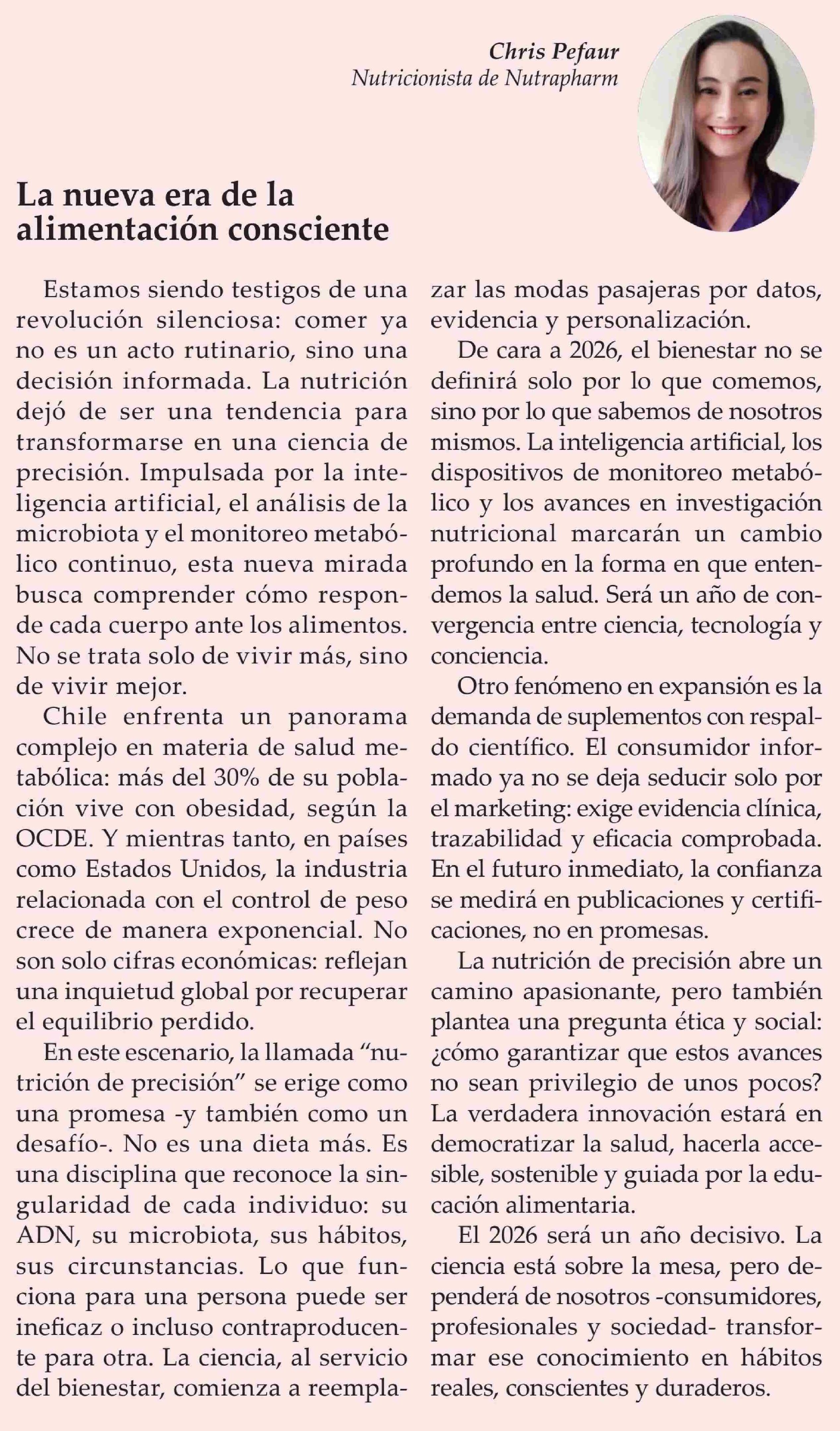 Columnas de Opinión: La nueva era de la alimentación consciente 12-01-2026 El Observador Vespertino |