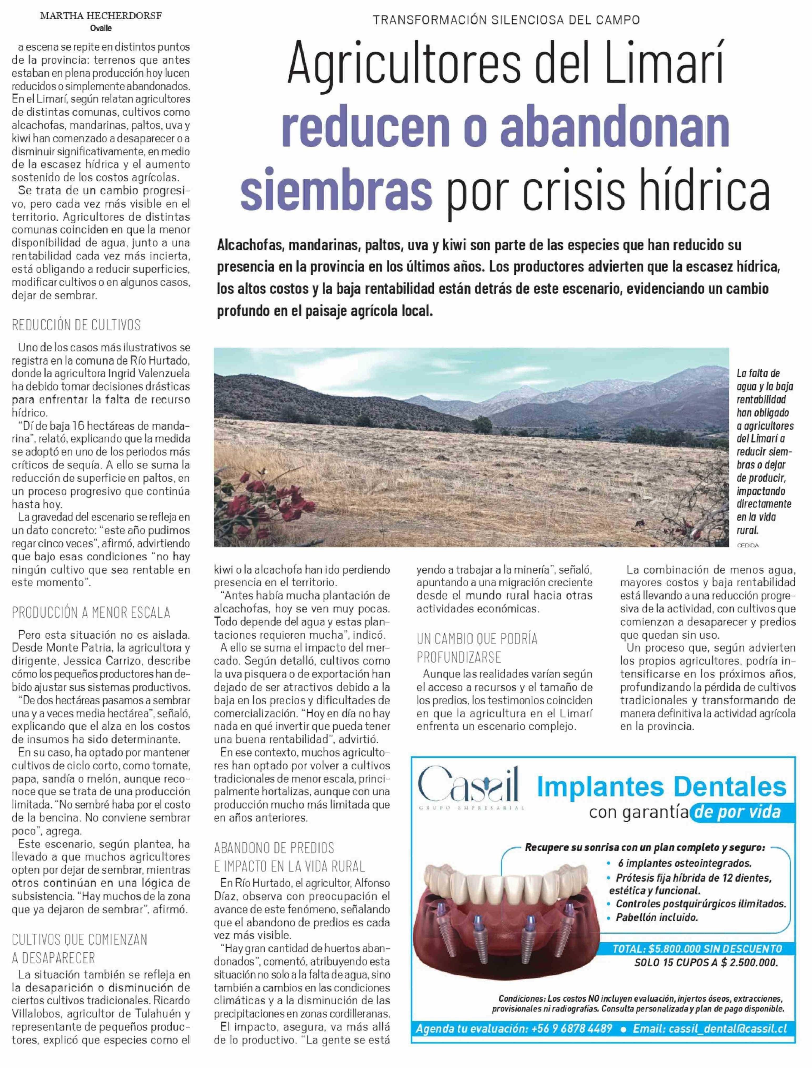 Agricultores del Limarí reducen o abandonan siembras por crisis hídrica 25-04-2026 El Ovallino |