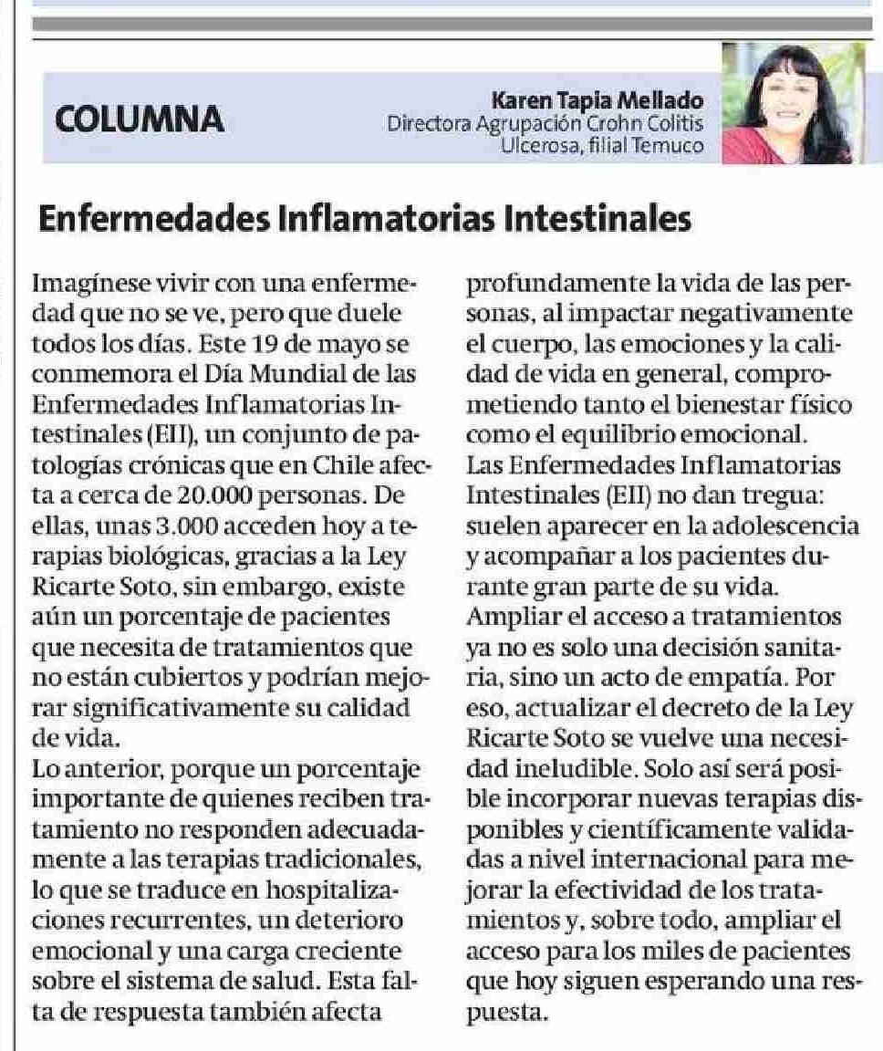 Columnas de Opinión: Enfermedades Inflamatorias Intestinales 20-05-2025 La Estrella de Concepción |