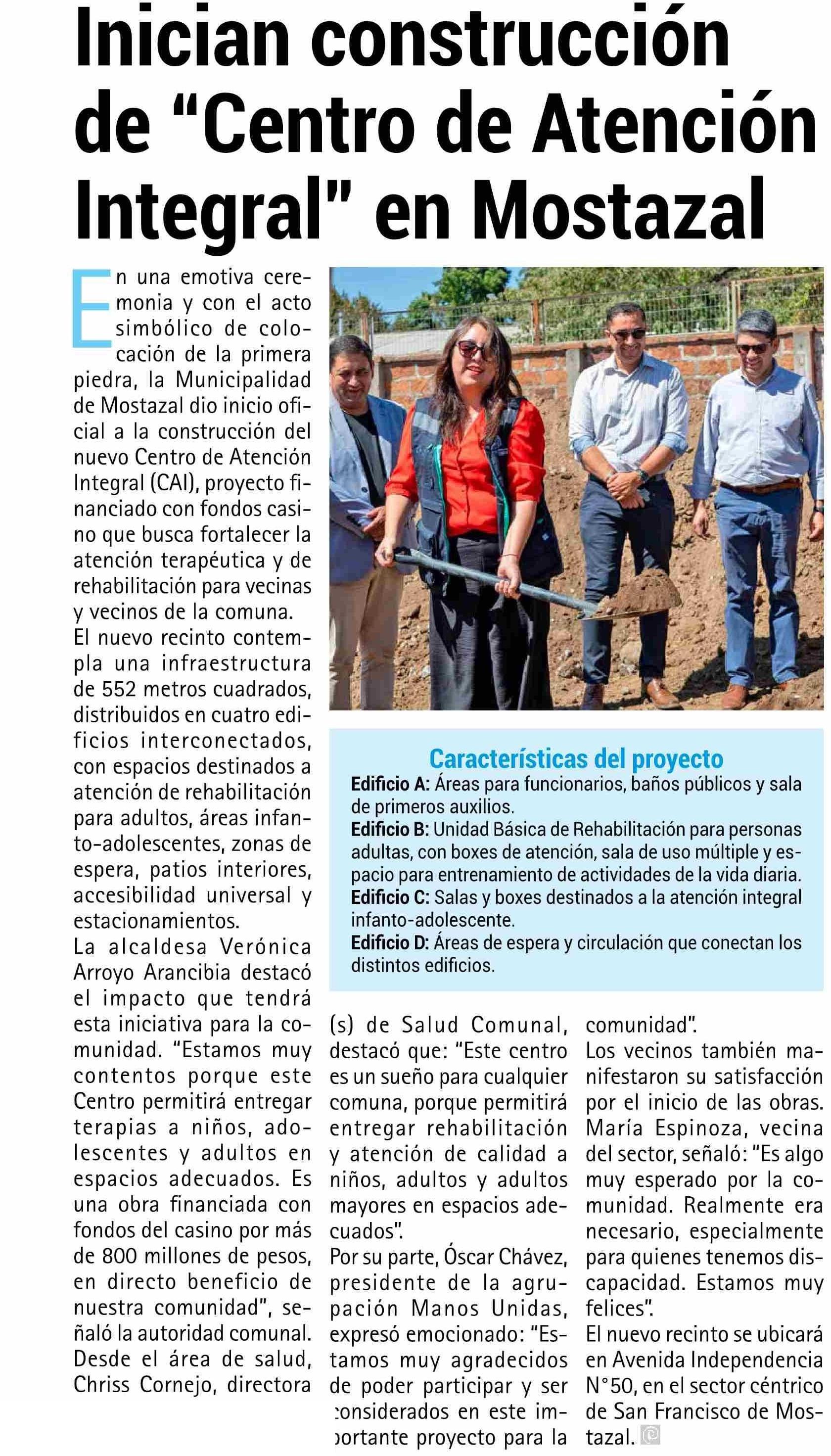 Título: Inician construcción de “Centro de Atención Integral” en Mostazal