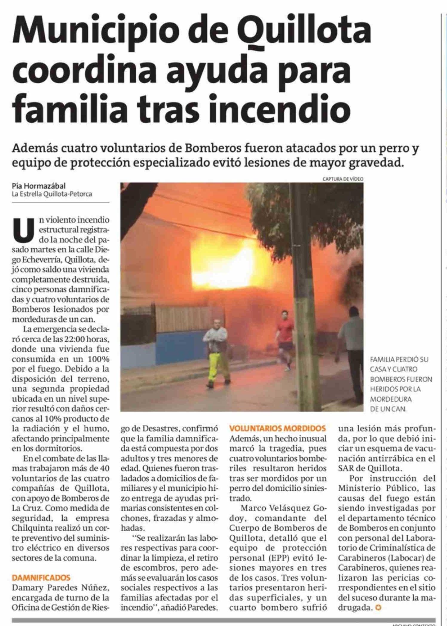 Título: Municipio de Quillota coordina ayuda para familia tras incendio