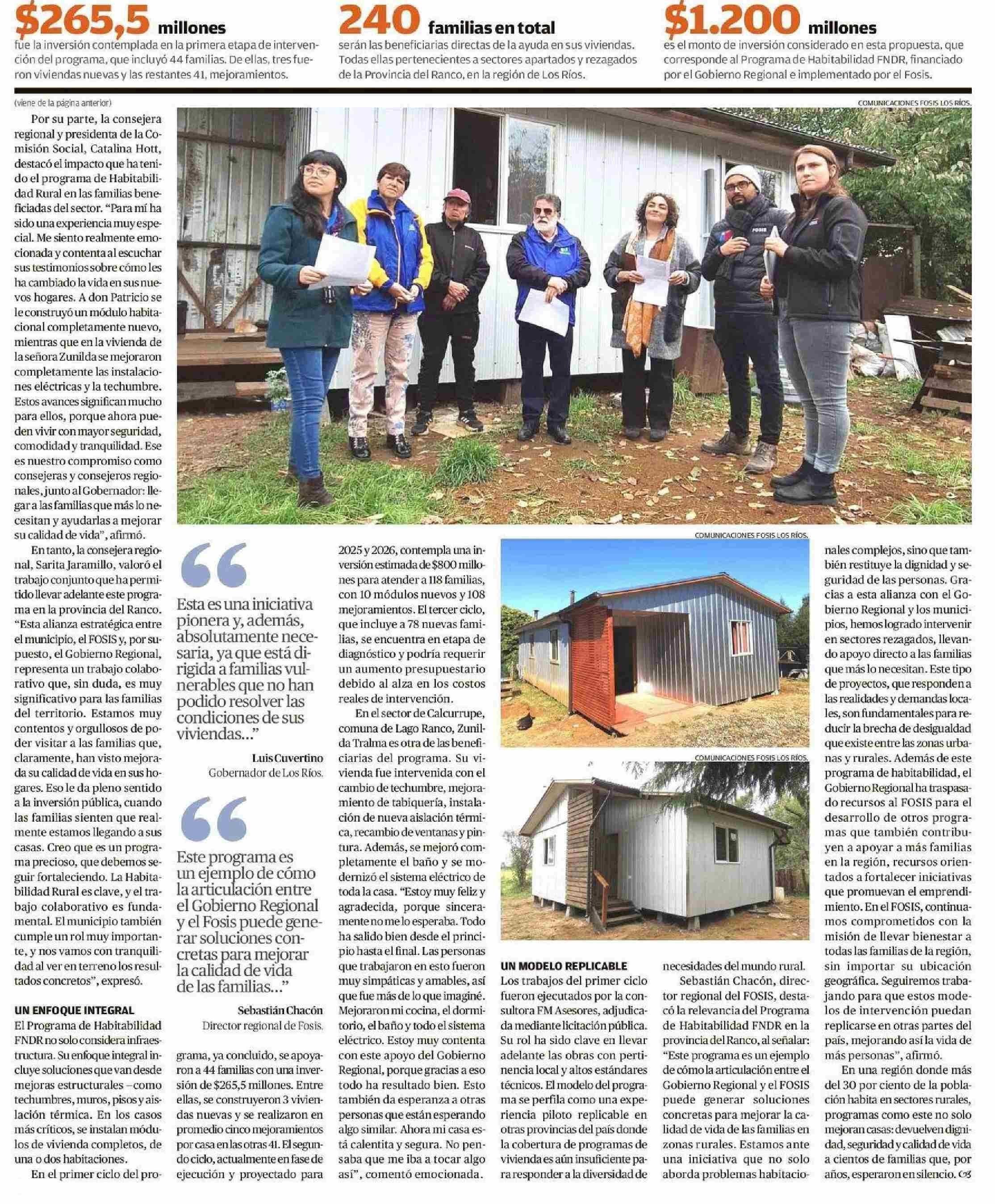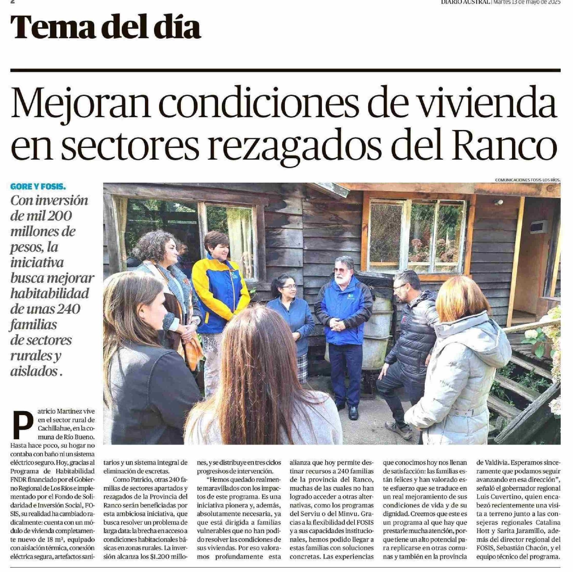 Mejoran condiciones de vivienda en sectores rezagados del Ranco 13-05-2025 Diario Austral Región de Los Ríos |