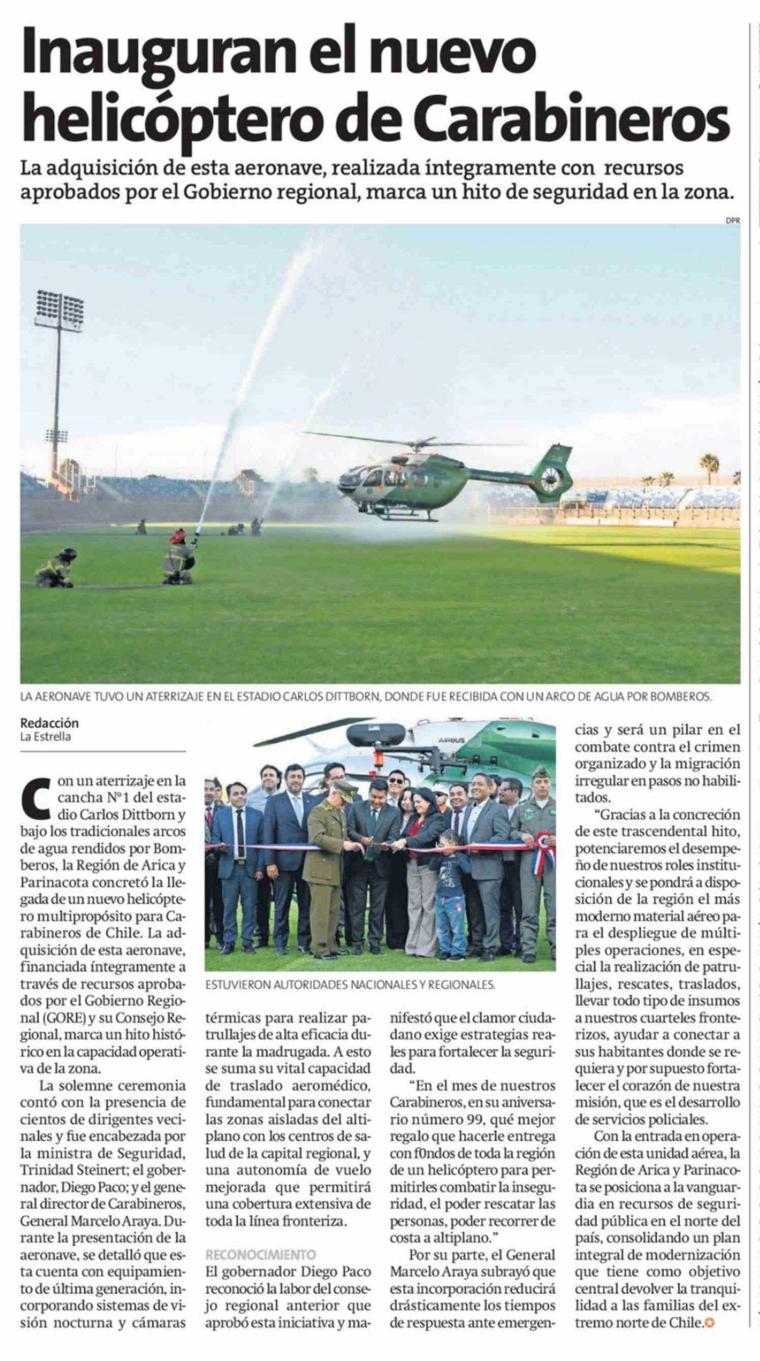 Inauguran el nuevo helicóptero de Carabineros 03-04-2026 La Estrella de Arica |
