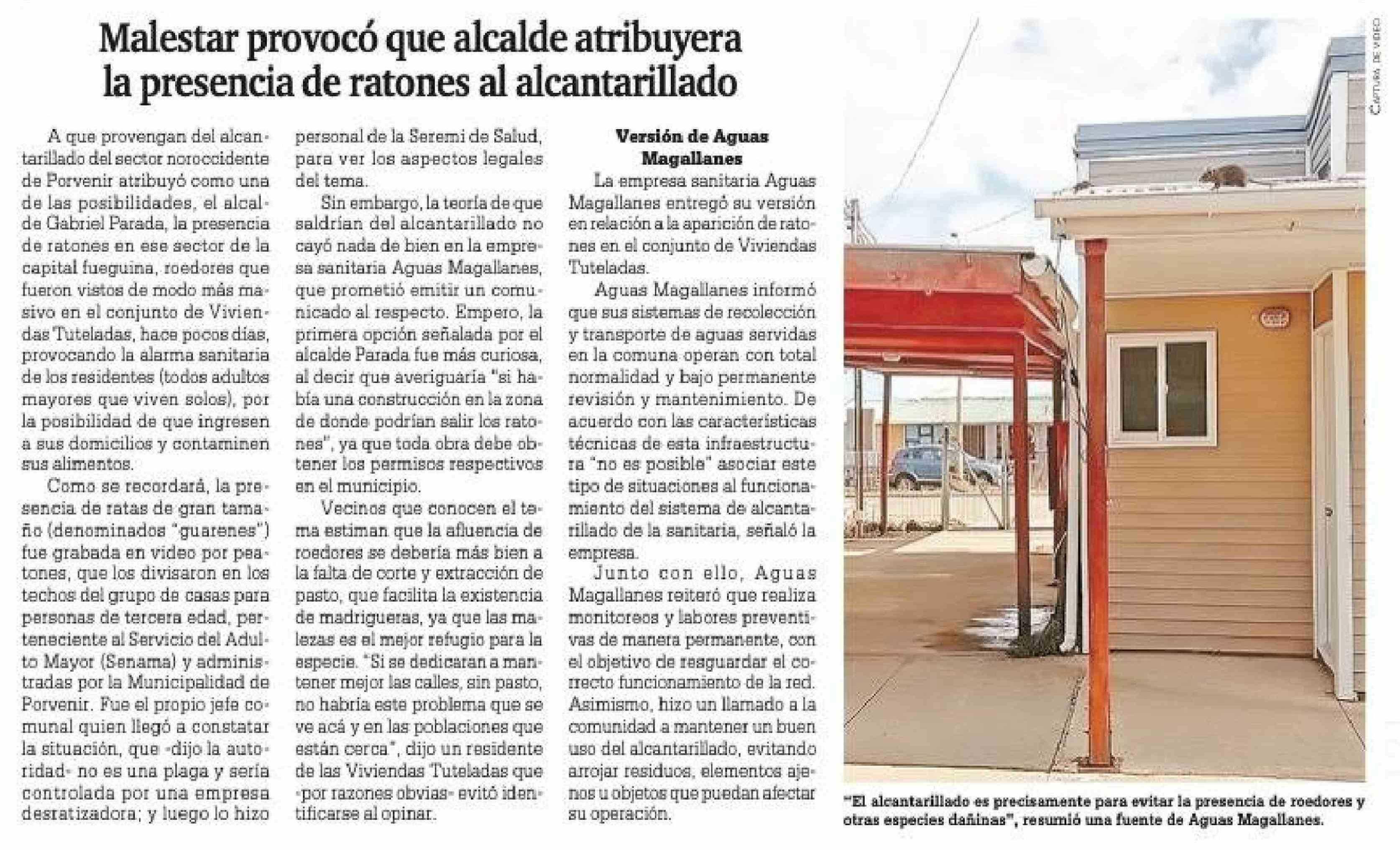 Malestar provocó que alcalde atribuyera la presencia de ratones al alcantarillado 17-03-2026 La Prensa Austral |