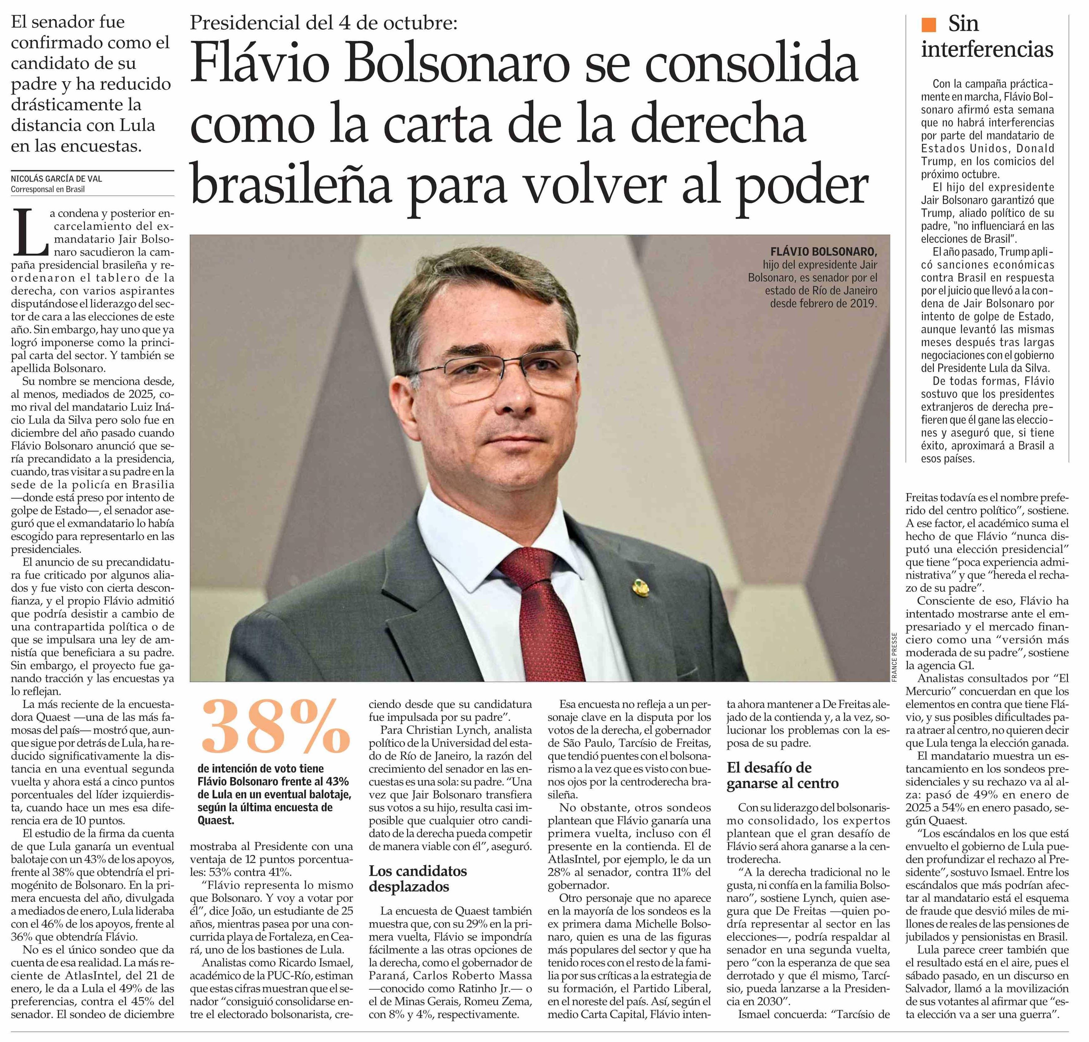 Título: Flávio Bolsonaro se consolida como la carta de la derecha brasileña para volver al poder
