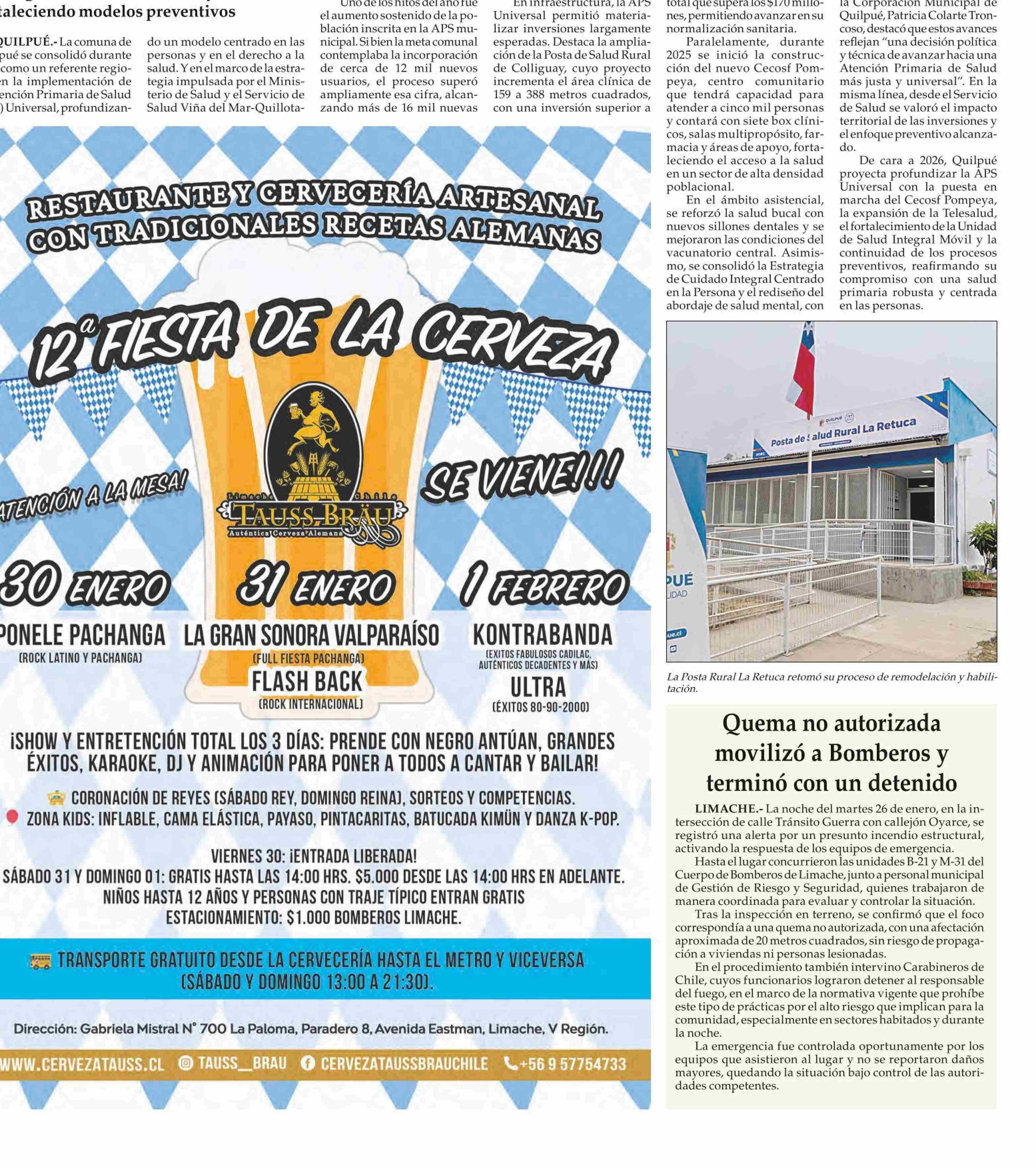 Fecha: 30-01-2026 Sector: Noticia general Región: Región de Valparaíso