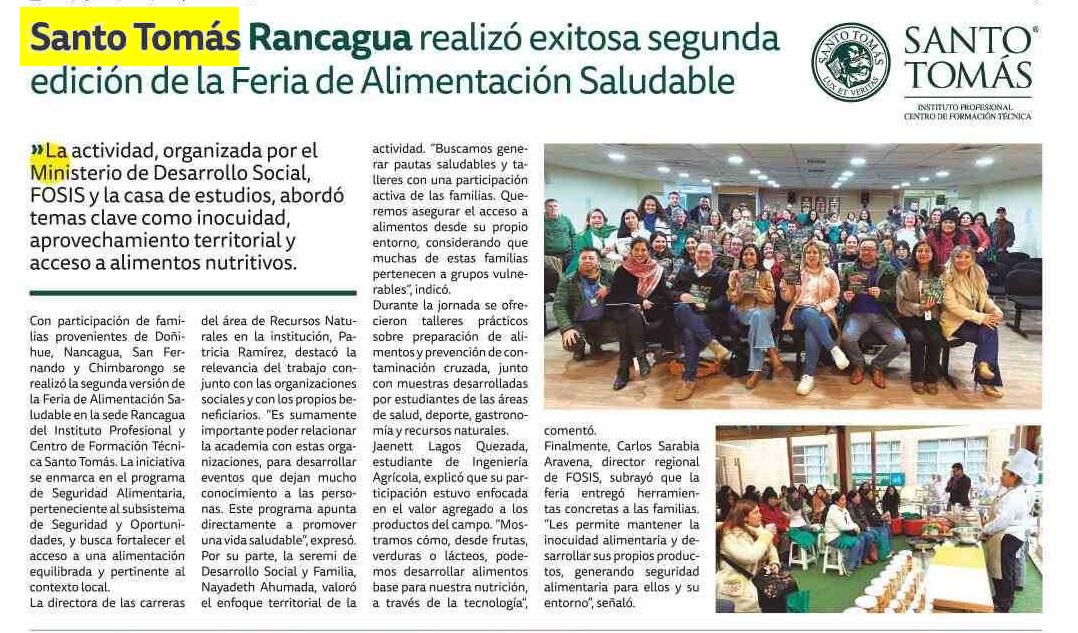 | Título: | Santo Tomás Rancagua realizó exitosa segunda edición de la Feria de Alimentación Saludable |
