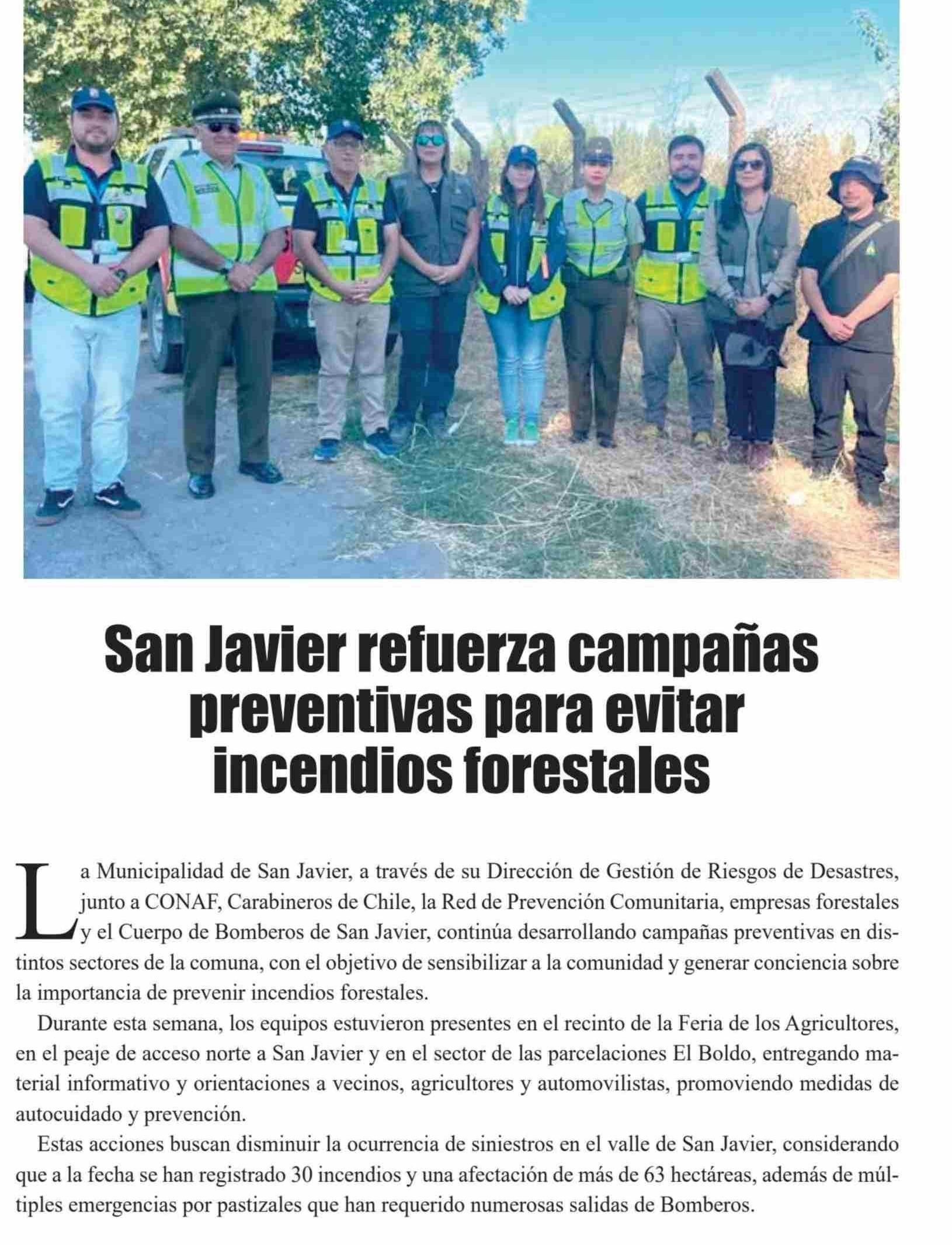 San Javiera refuerza campañas preventivas para evitar incendios forestales 14-02-2026 El Heraldo |