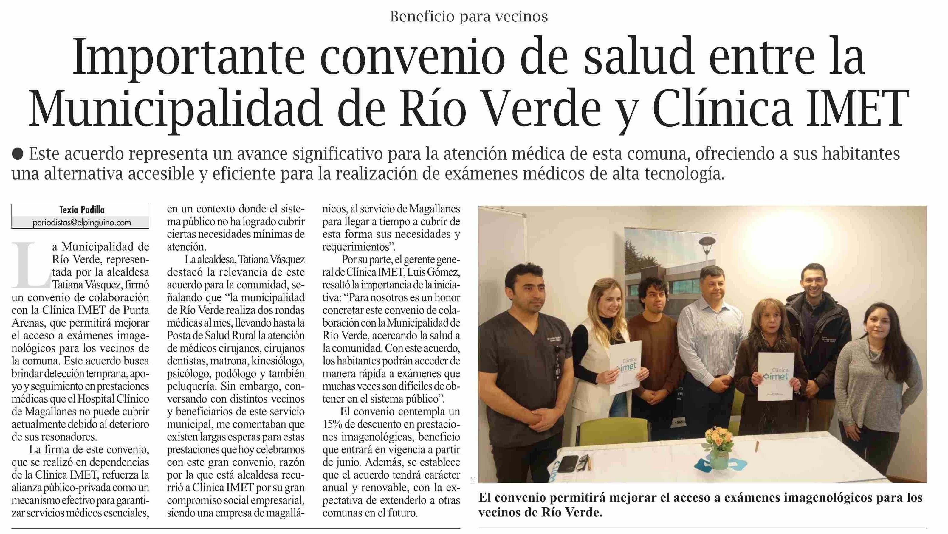 Importante convenio de salud entre la Municipalidad de Río Verde y Clínica IMET 20-05-2025 El Pingüino |