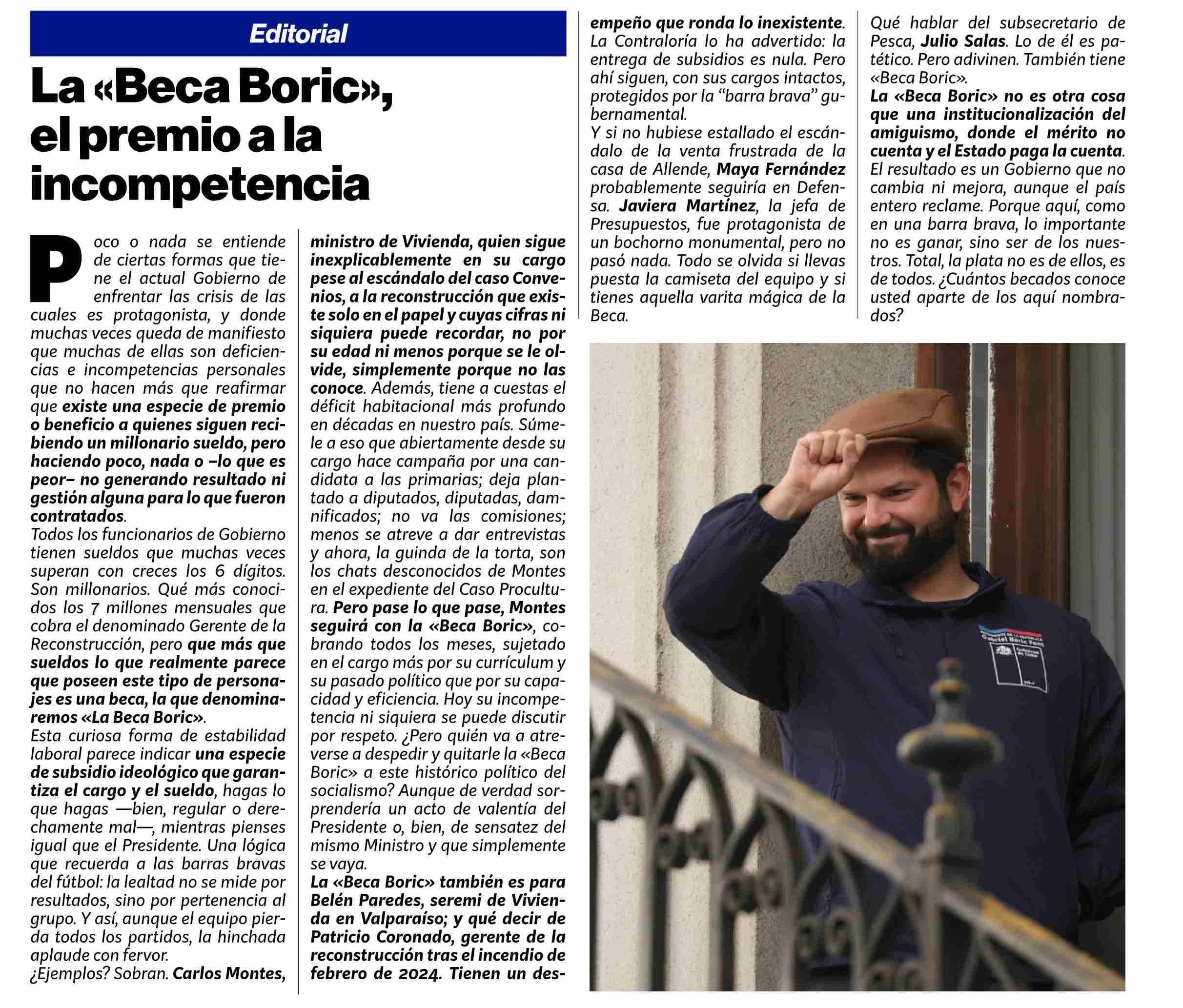 | Título: | La «Beca Boric», el premio ala incompetencia |