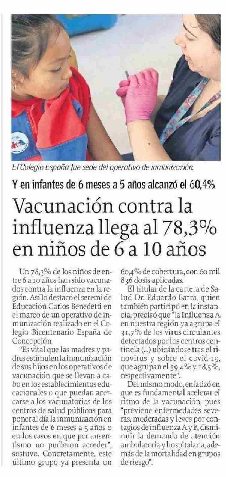 Vacunación contra la influenza llega al 78,3% en niños de 6 a 10 años 22-05-2025 El Sur |