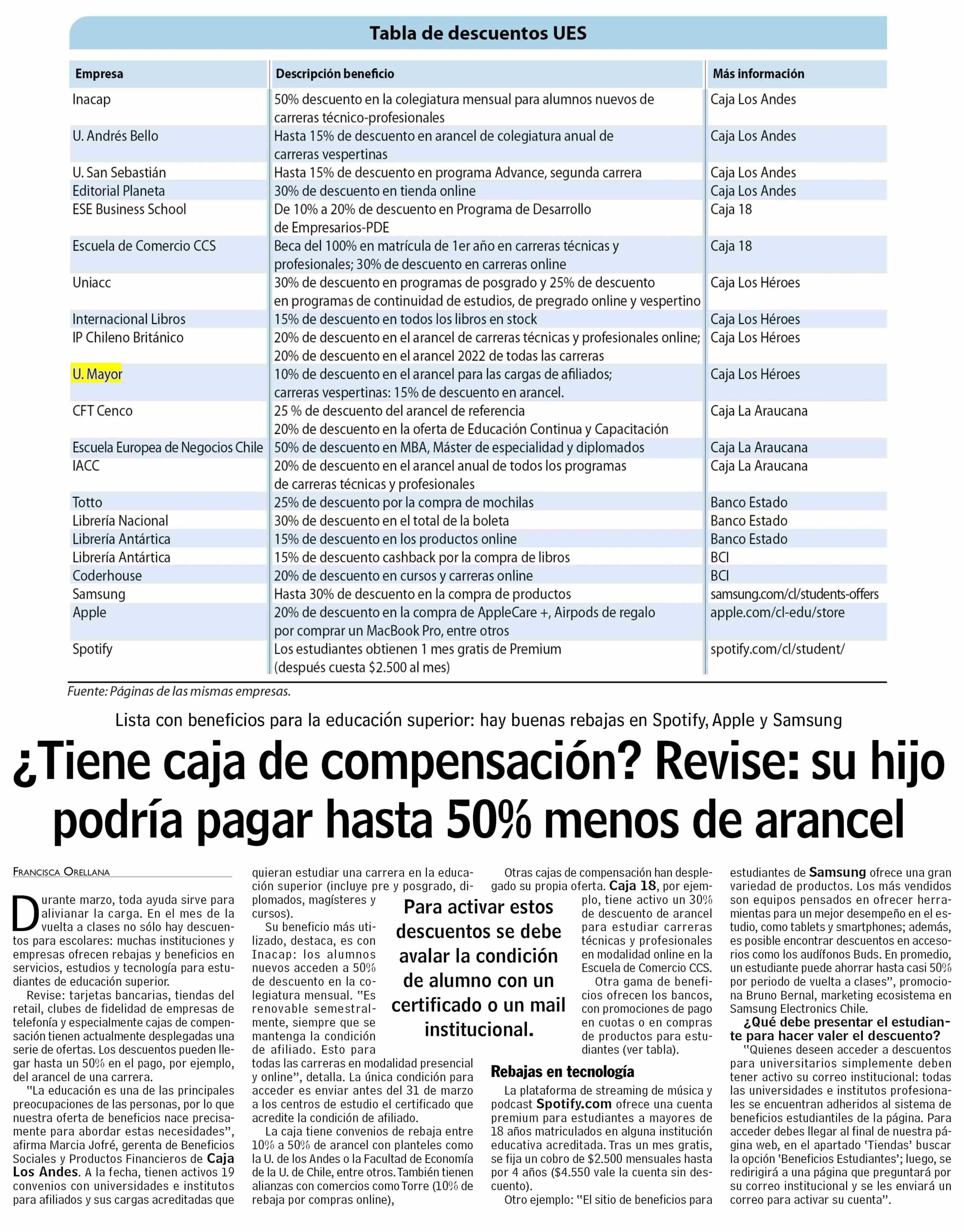 | Título: | ¿Tiene caja de compensación? Revise: su hijo podría pagar hasta 50% menos de arancel |