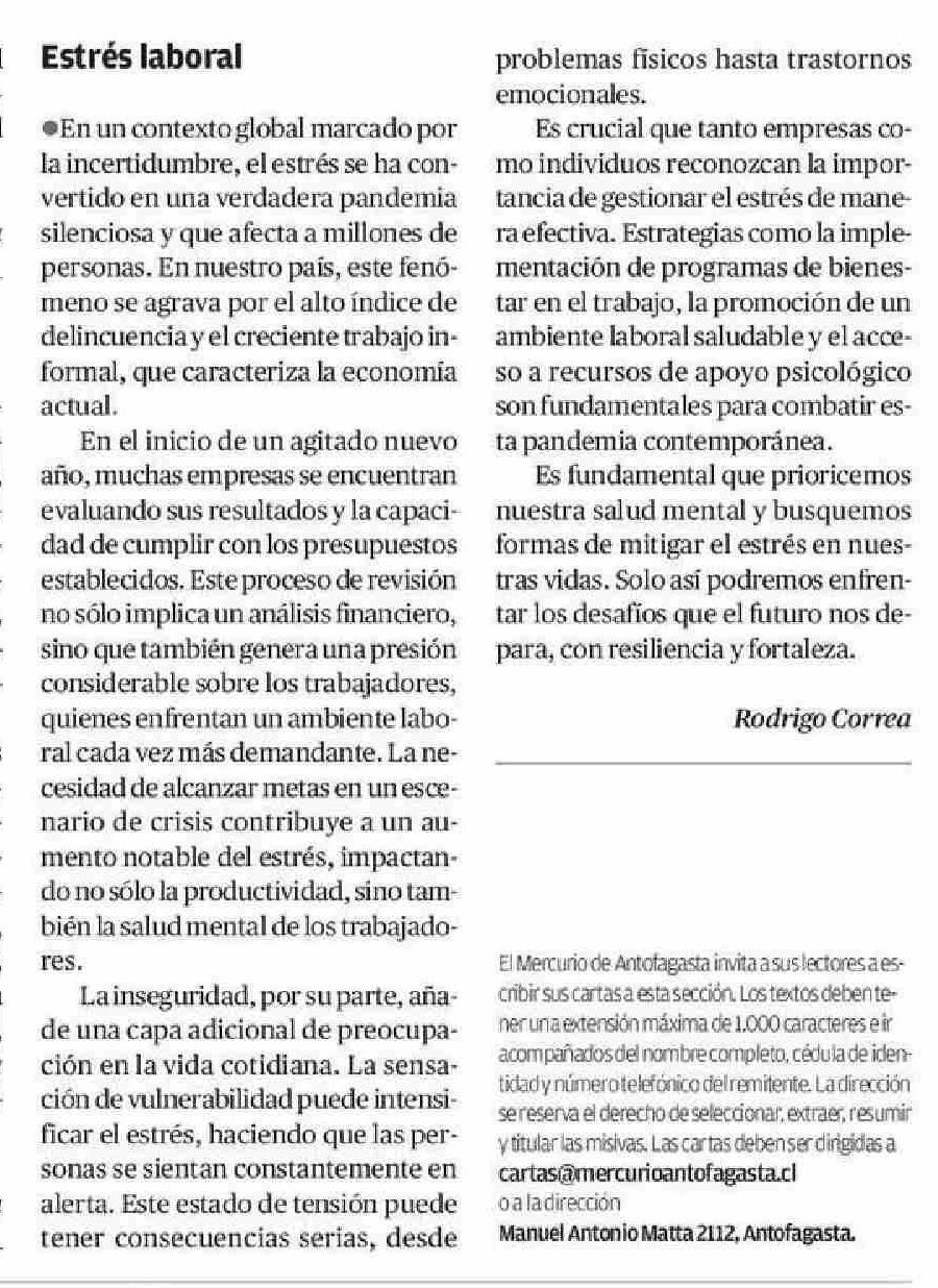 Cartas: Estrés laboral