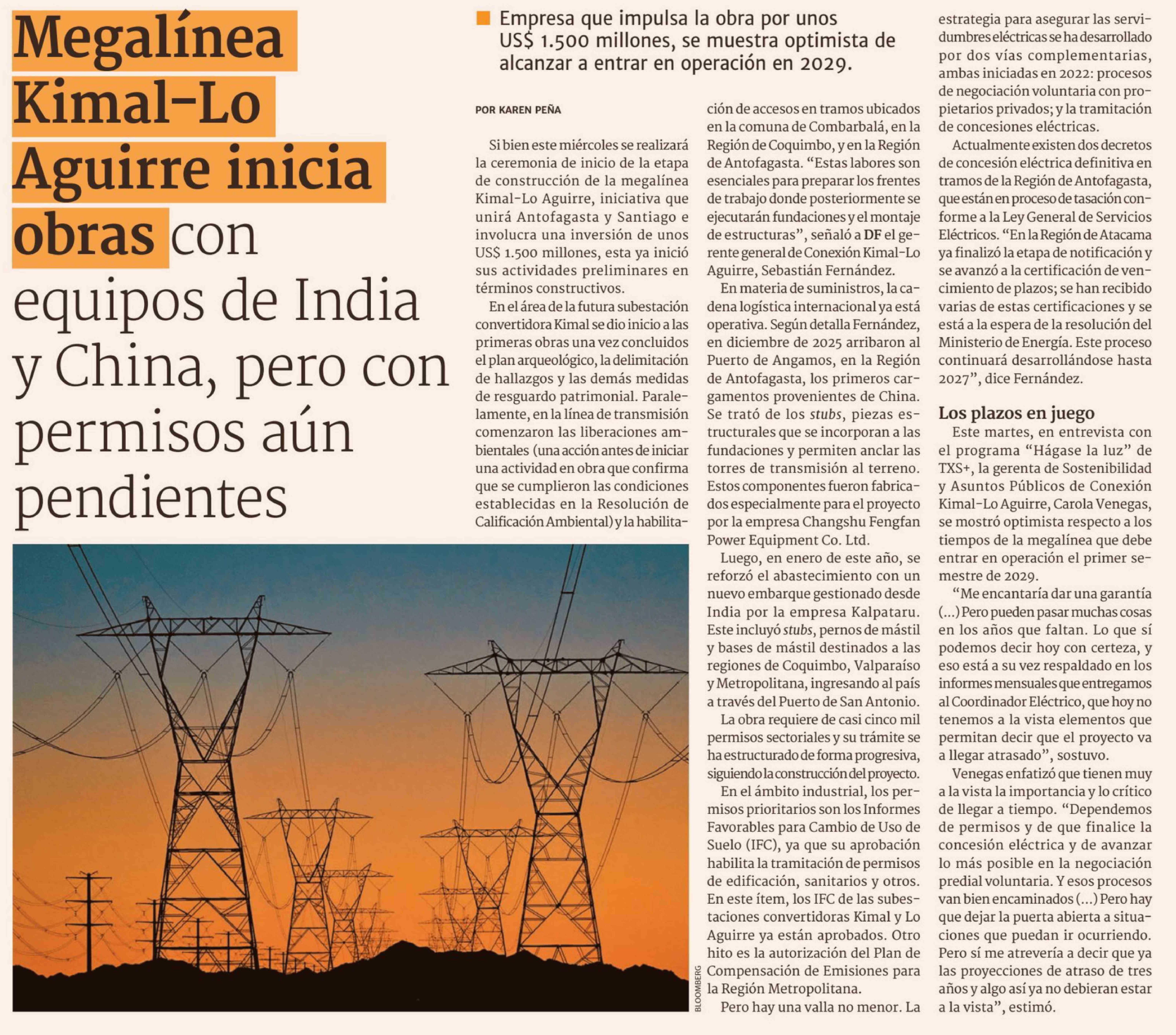 Título: Megalínea Kimal-Lo Aguirre inicia obras con equipos de India y China, pero con permisos aún pendientes