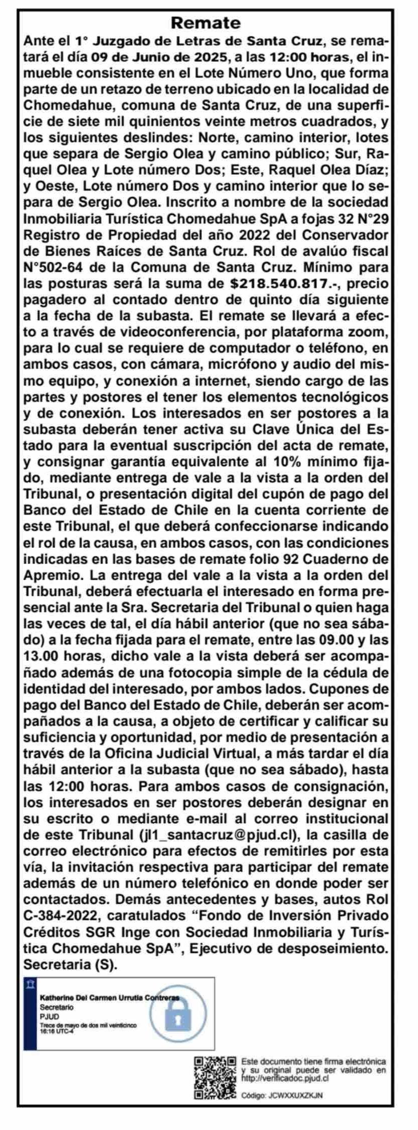 | Fecha: | 20-05-2025 | Sector: | Noticia general | Región: | Región del Libertador General Bernardo O'Higgins |