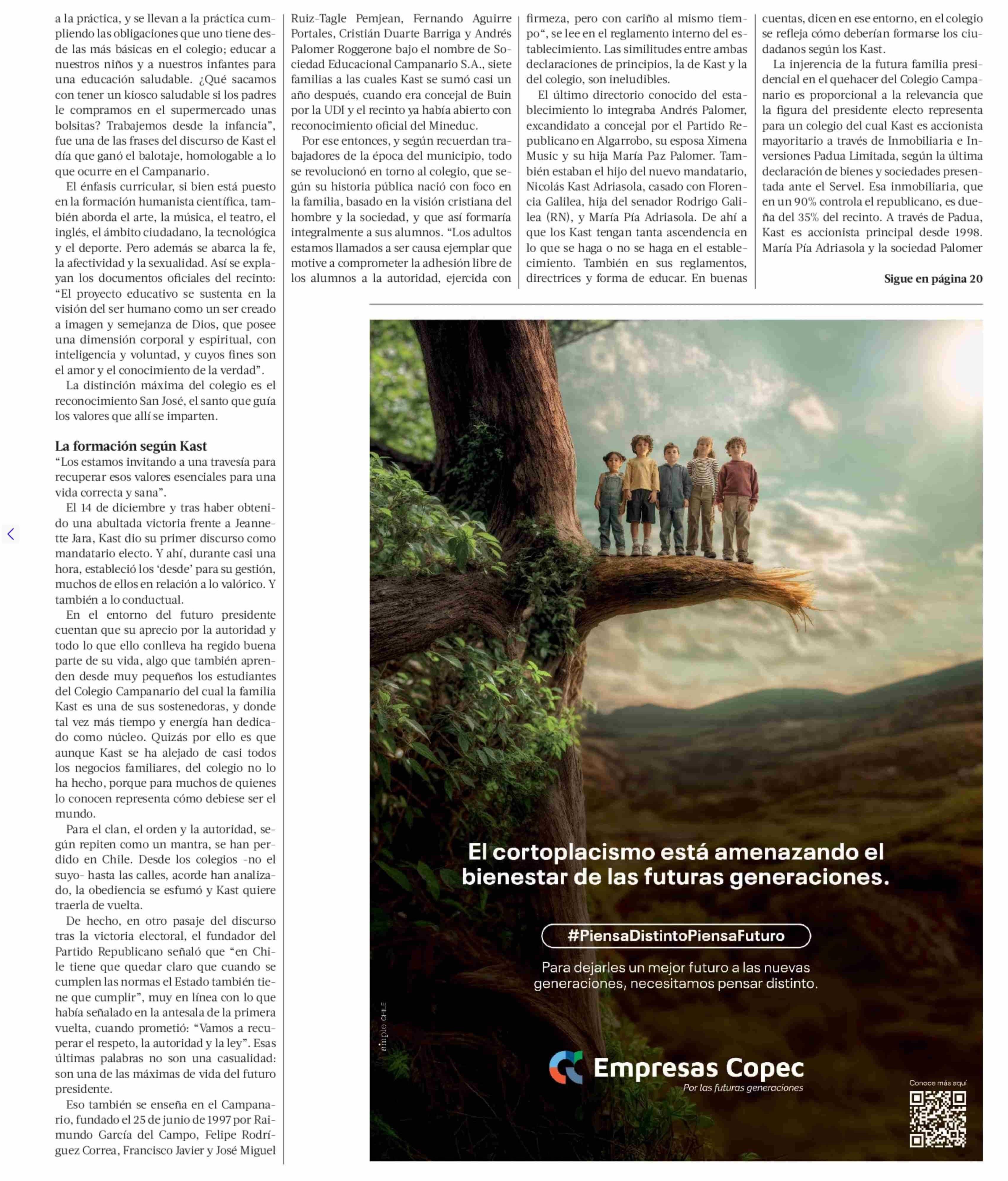 Colegio campanario, La formación escolar según Kast 11-01-2026 La Tercera |