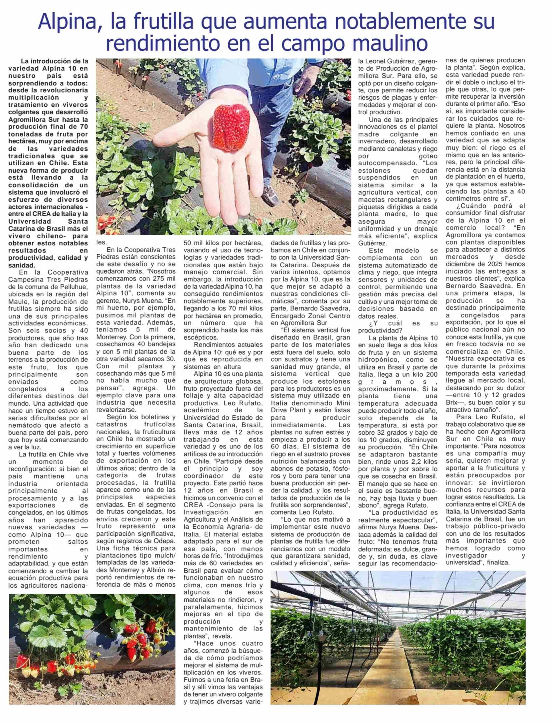 Título: Alpina, la frutilla que aumenta notablemente su rendimiento en el campo maulino