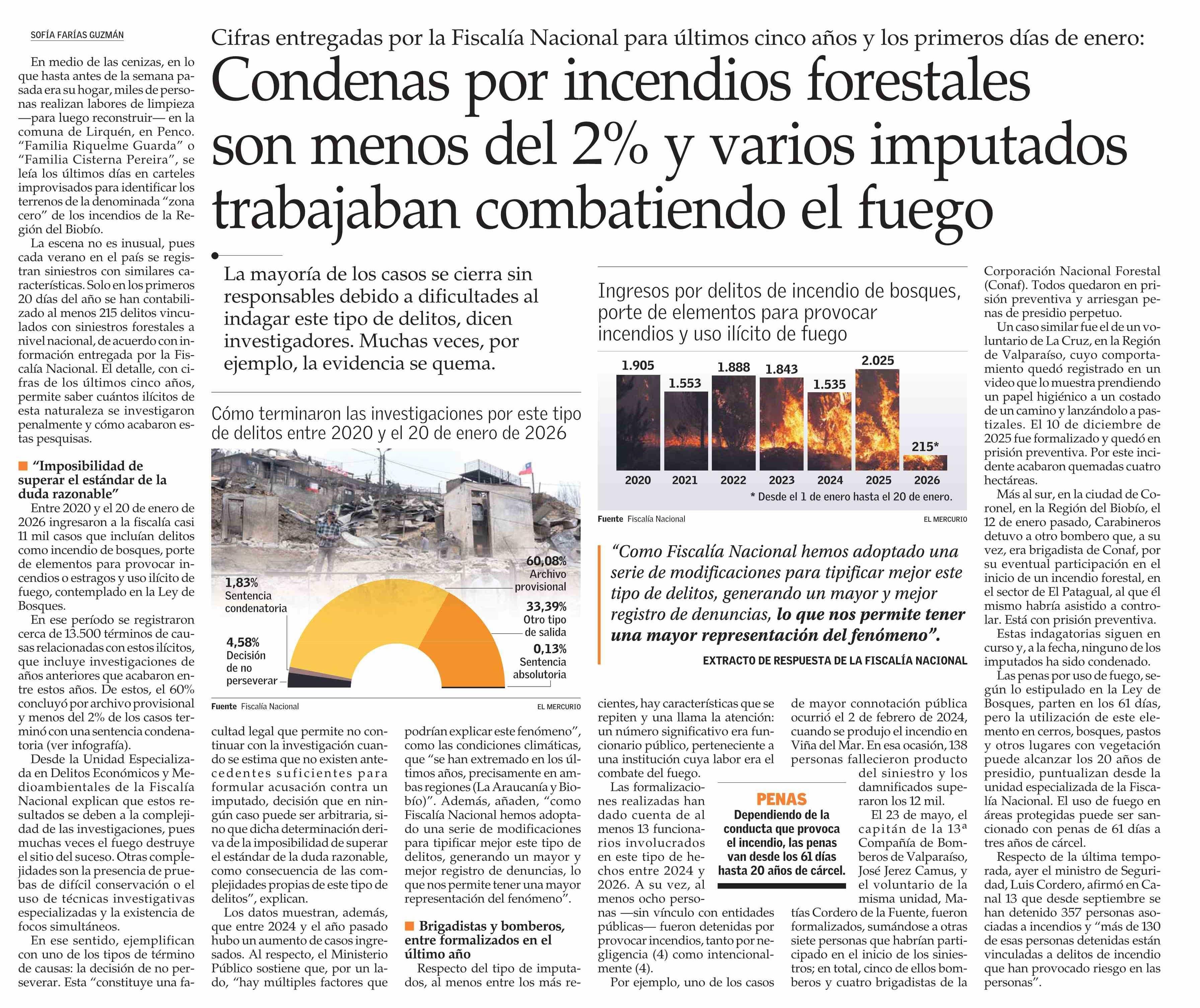 Título: Condenas por incendios forestales son menos del 2% y varios imputados trabajaban combatiendo el fuego