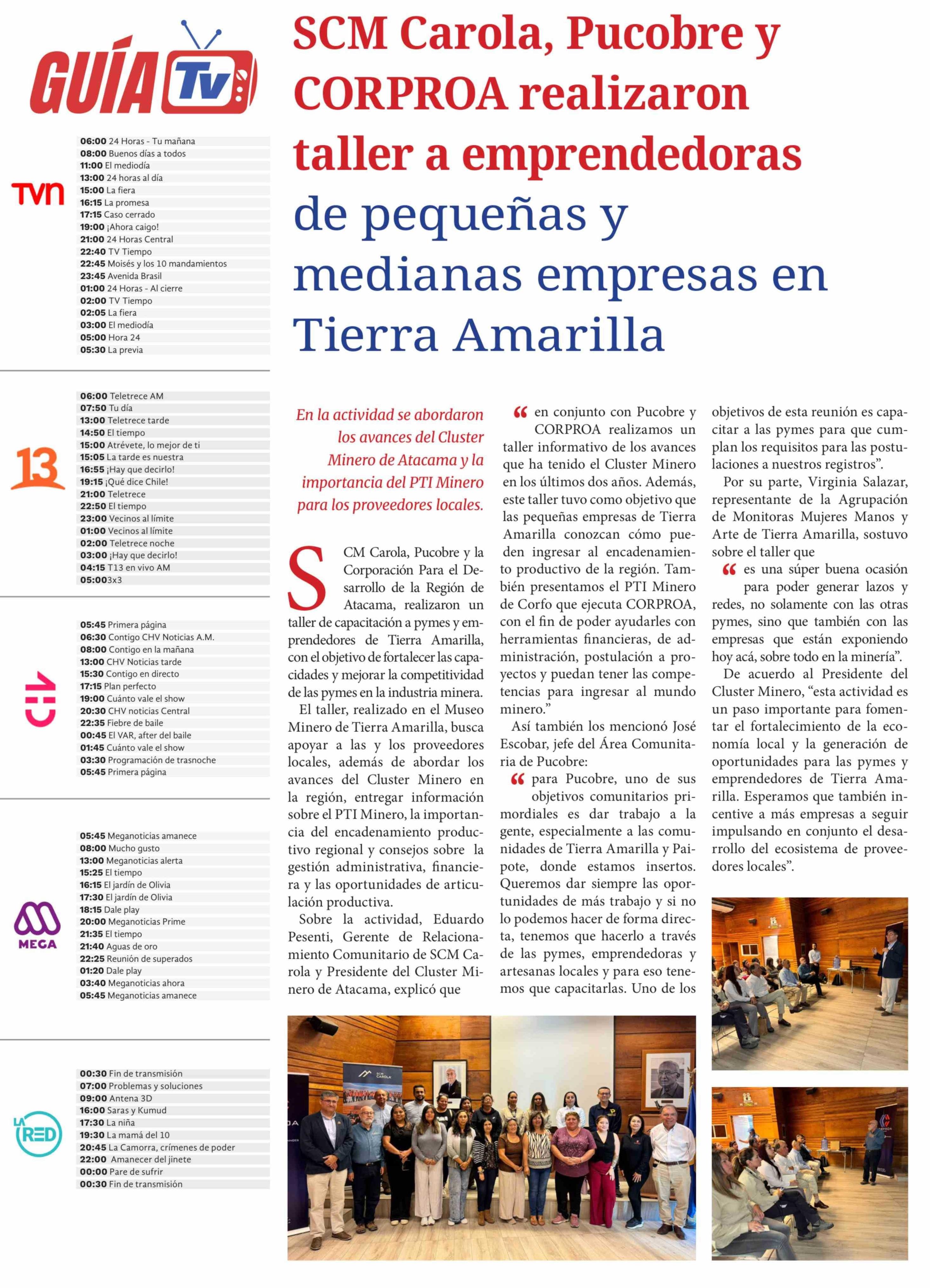 Título: SCM Carola, Pucobre y CORPROA realizaron taller a emprendedoras de pequeñas y medianas empresas en Tierra Amarilla
