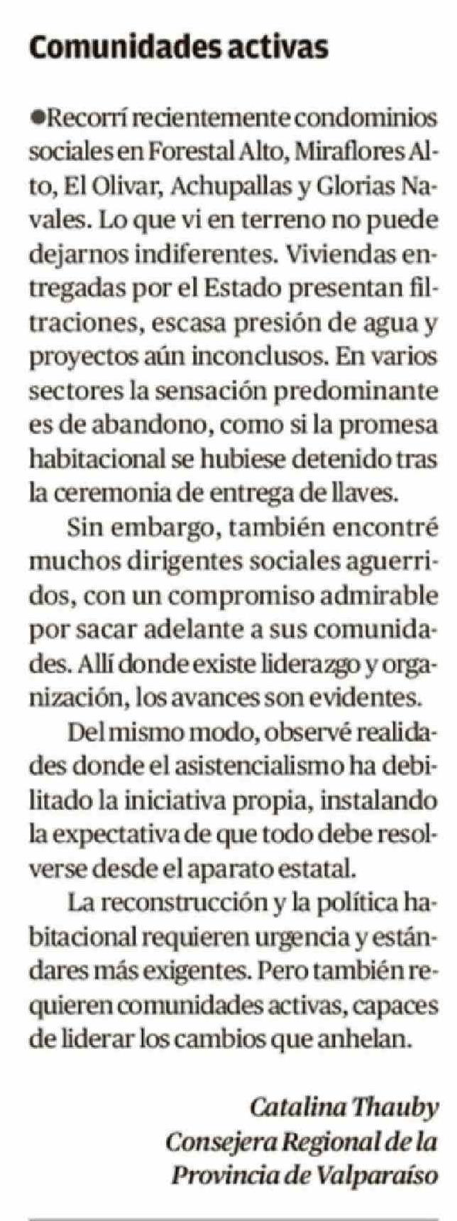 Cartas: Comunidades activas 20-02-2026 El Mercurio de Valparaíso |