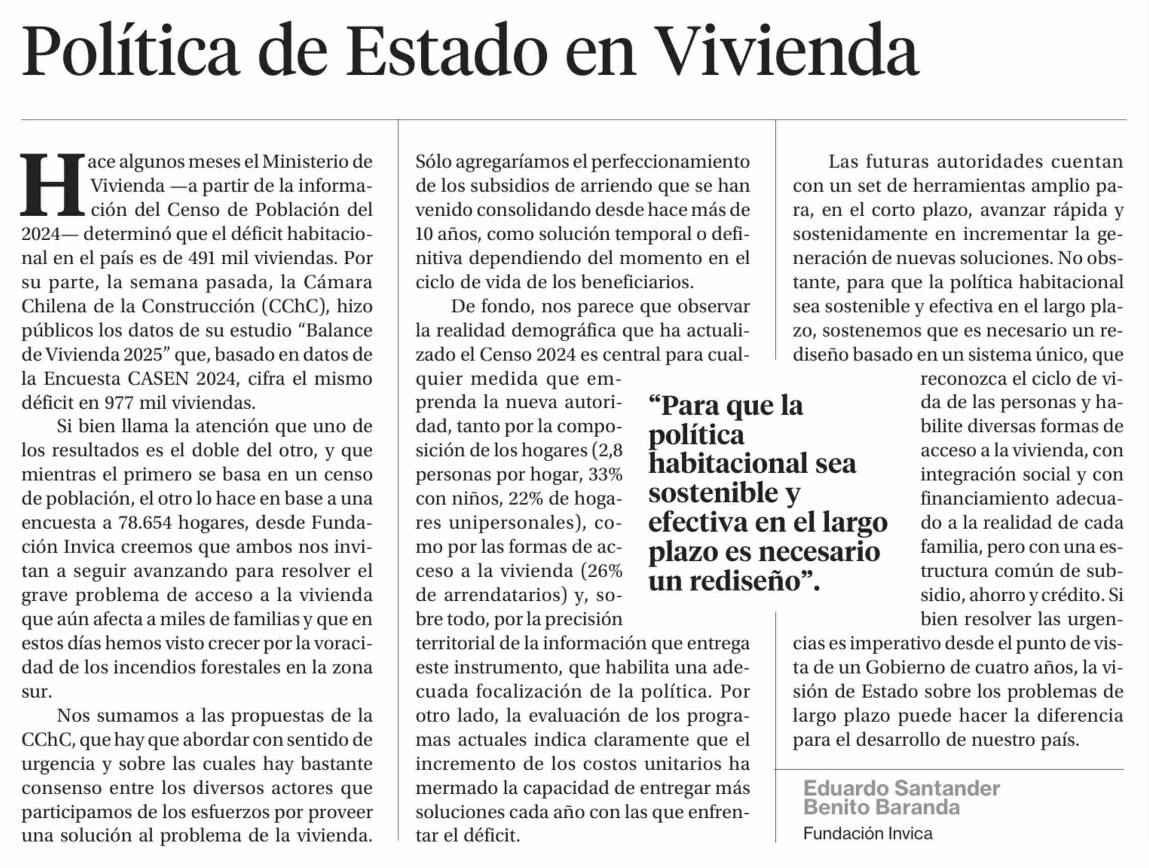 Columnas de Opinión: Política de Estado en Vivienda 11-02-2026 La Segunda |