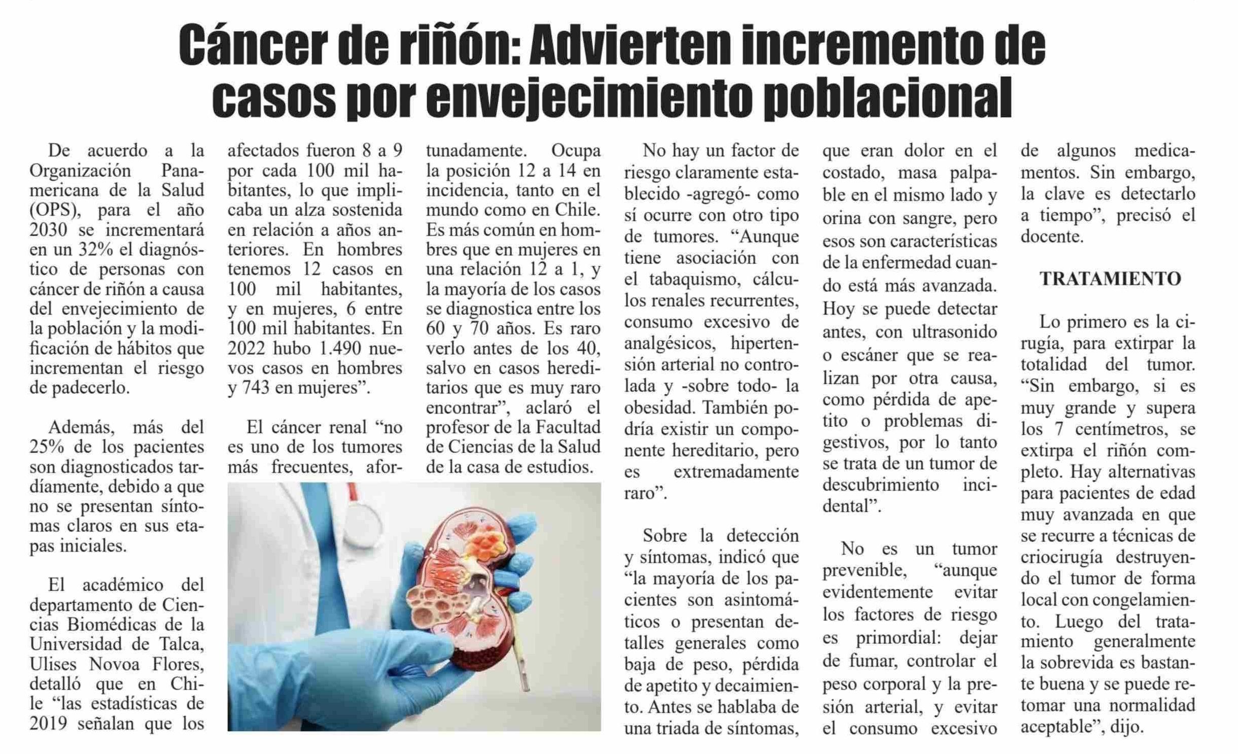 | Título: | Cáncer de riñón: Advierten incremento de casos por envejecimiento poblacional |