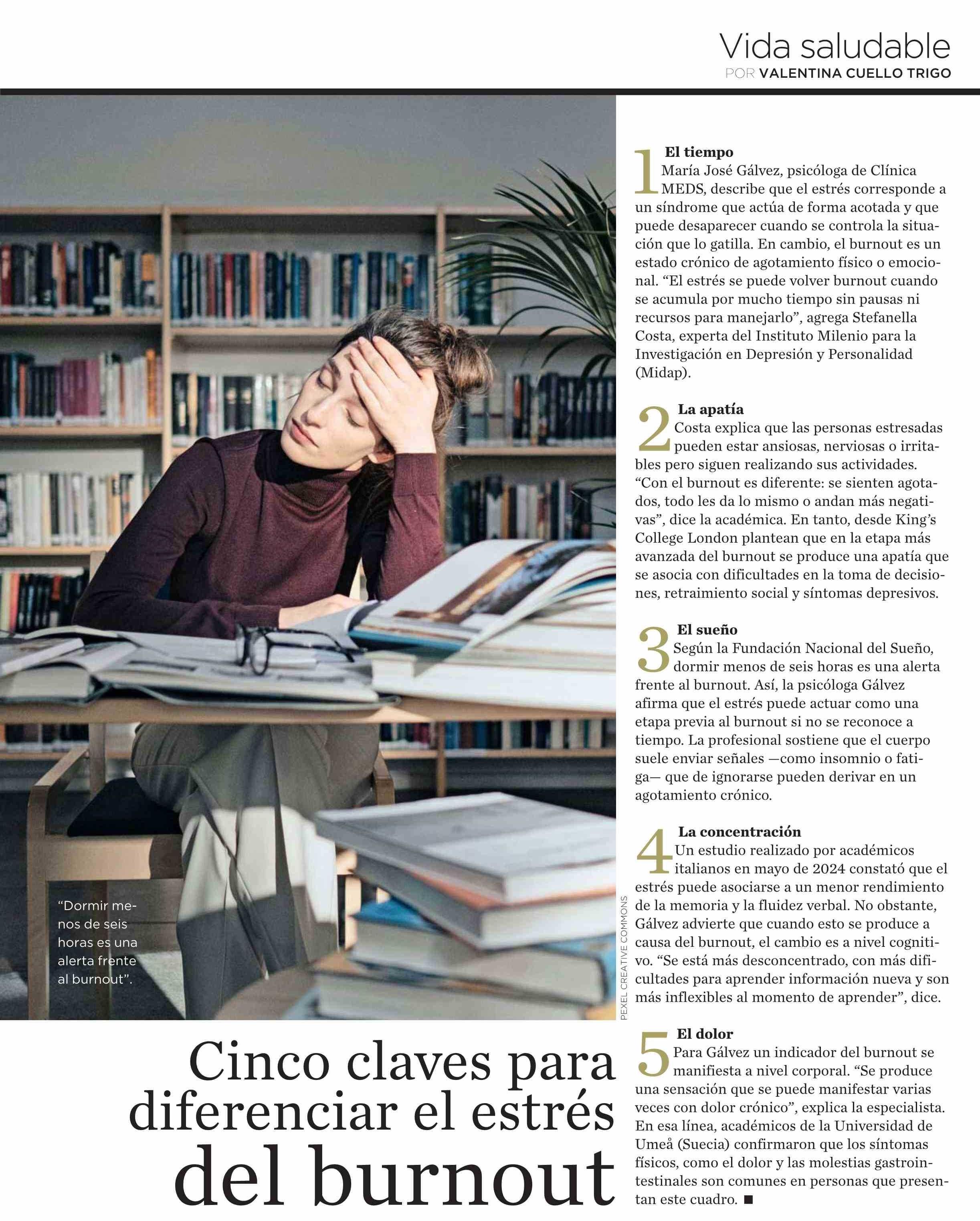 Cinco claves para diferenciar el estrés del burnout 17-06-2025 El Mercurio |