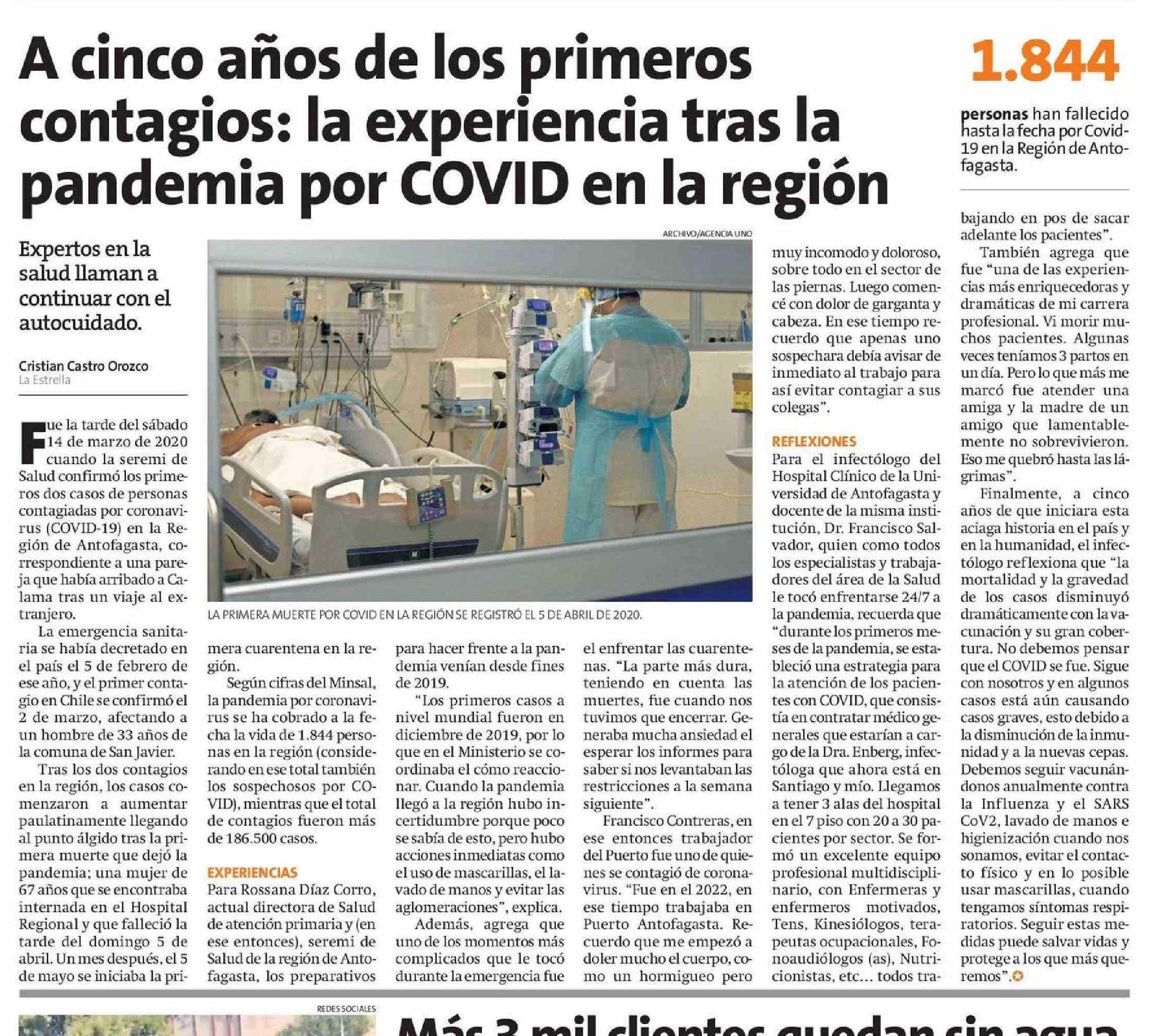 A cinco años de los primeros contagios: la experiencia tras la pandemia por COVID en la región 19-03-2025 La Estrella de Antofagasta |