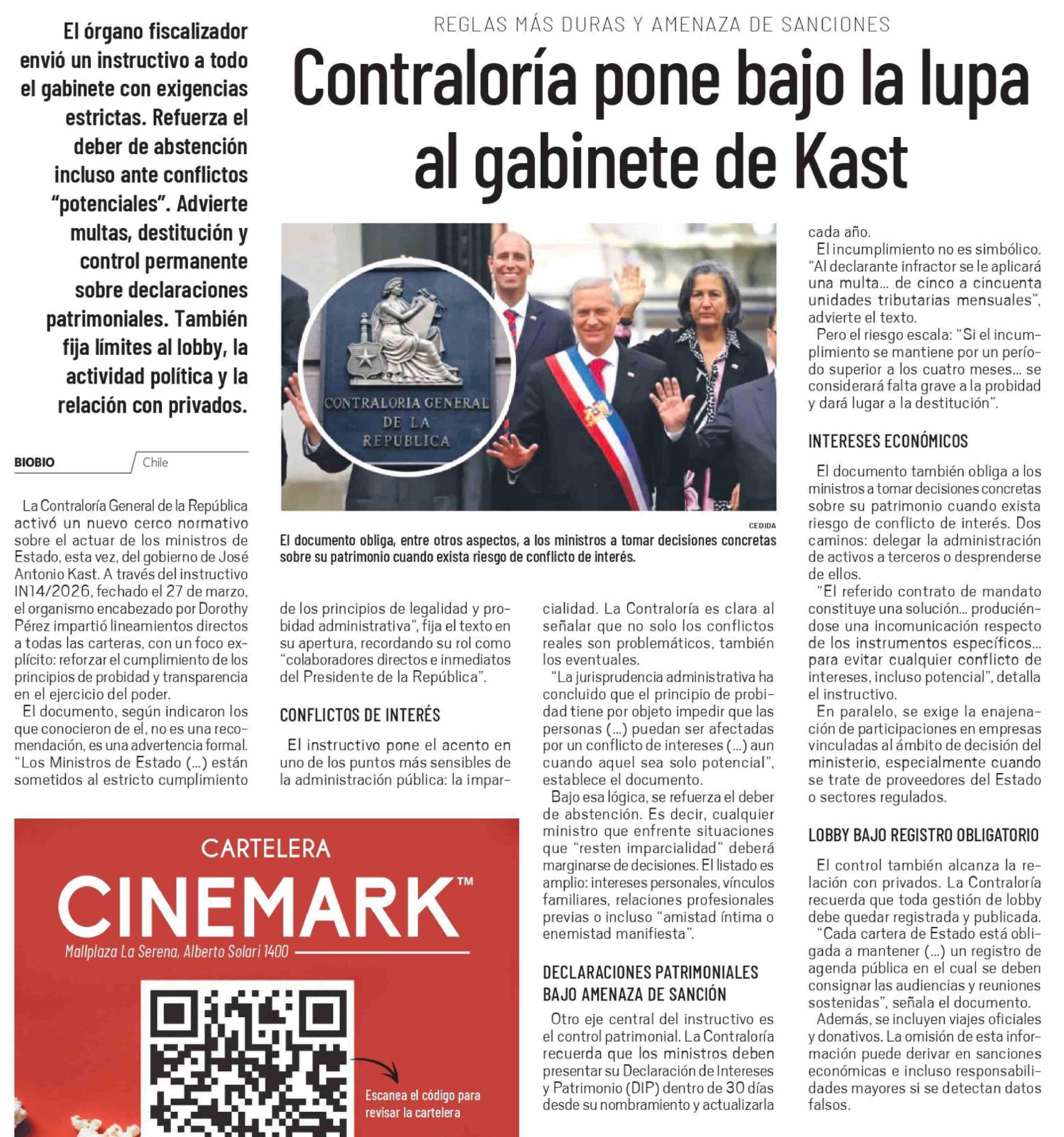 | Título: | Contraloría pone bajo la lupa al gabinete de Kast |