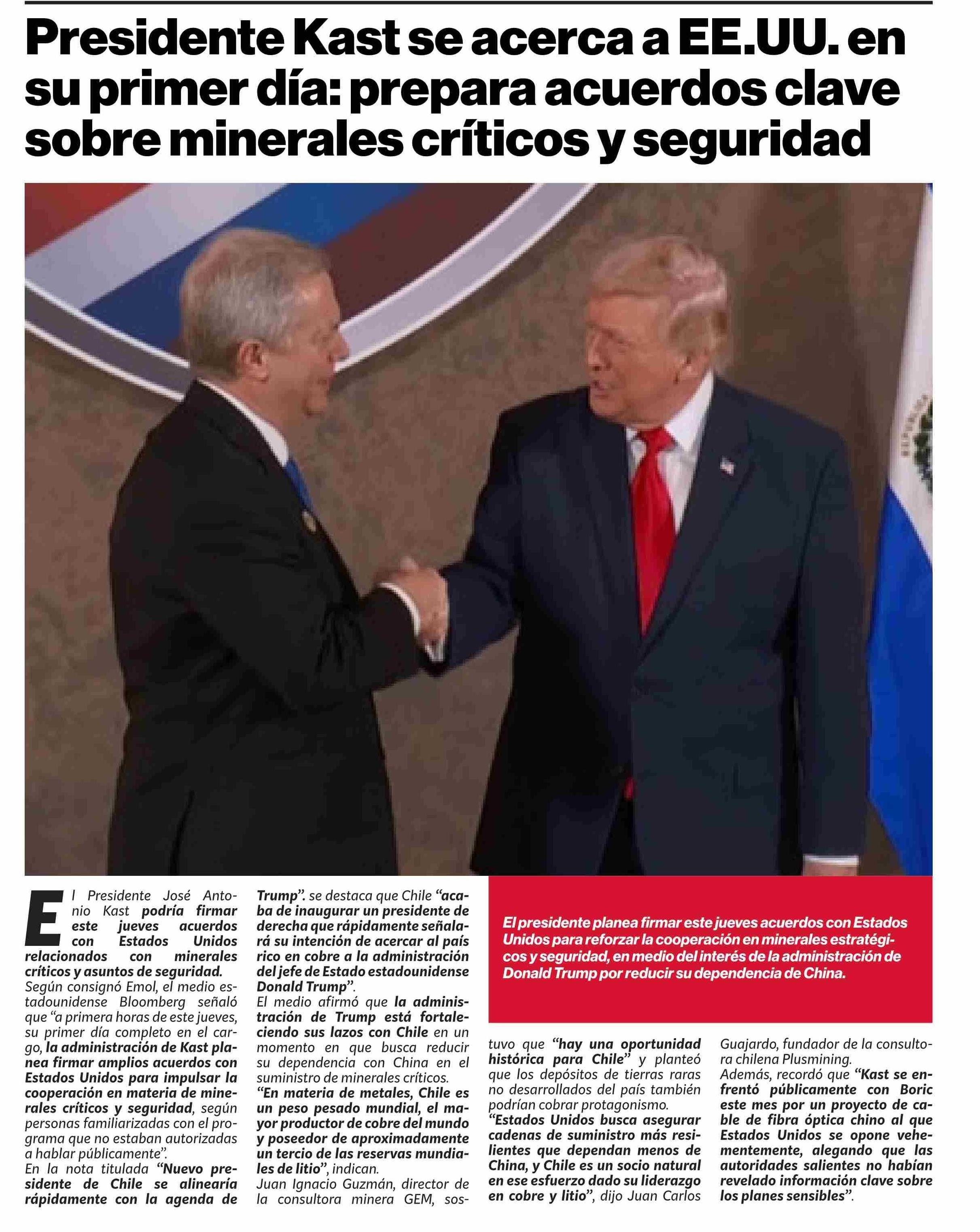 Presidente Kastse acerca a EE.UU. en su primer día: prepara acuerdos clave sobre minerales críticos y seguridad 12-03-2026 Puranoticia.cl |