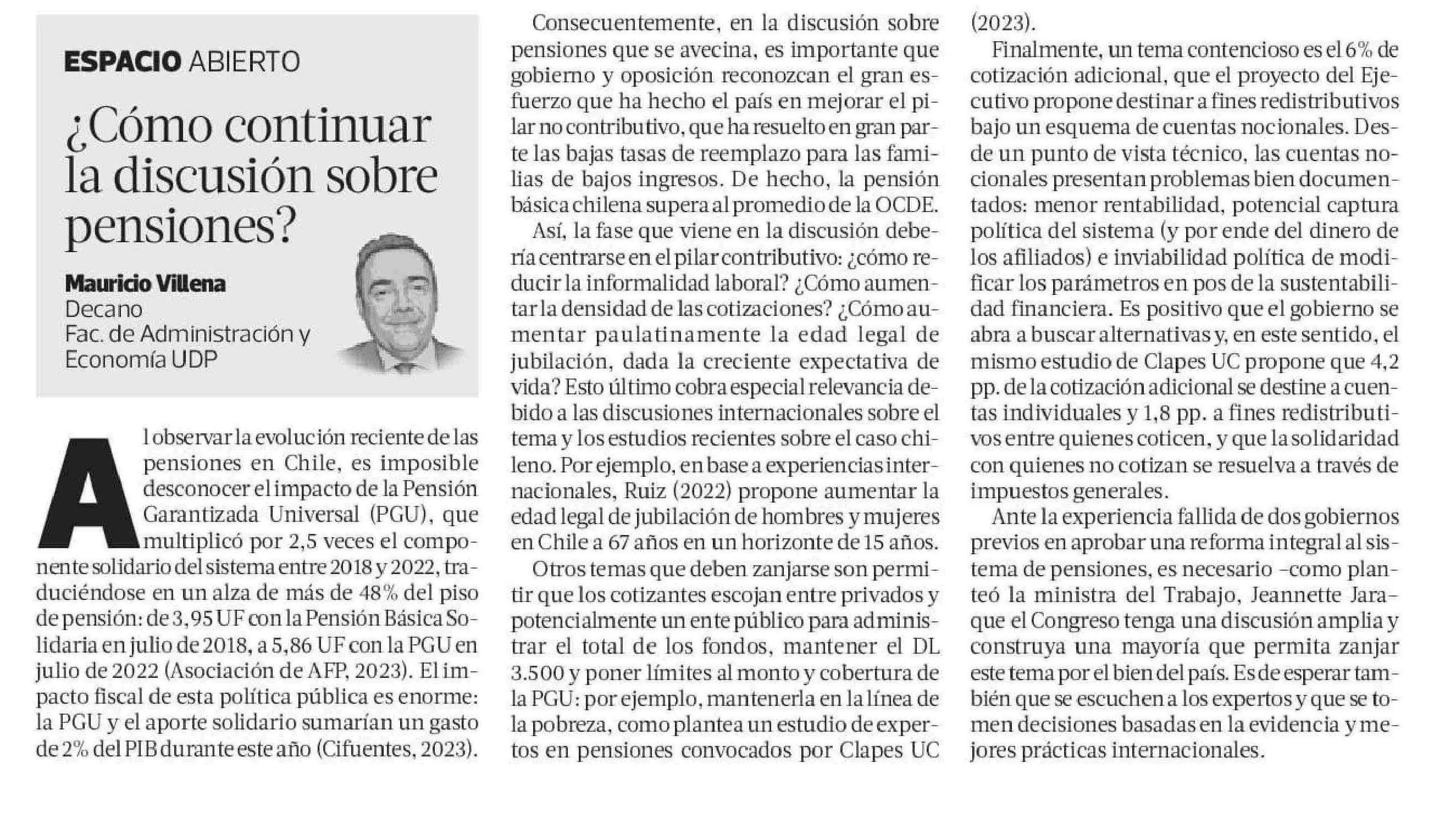 ¿Cómo continuar la discusión sobre pensiones? 25-05-2023 La Tercera |