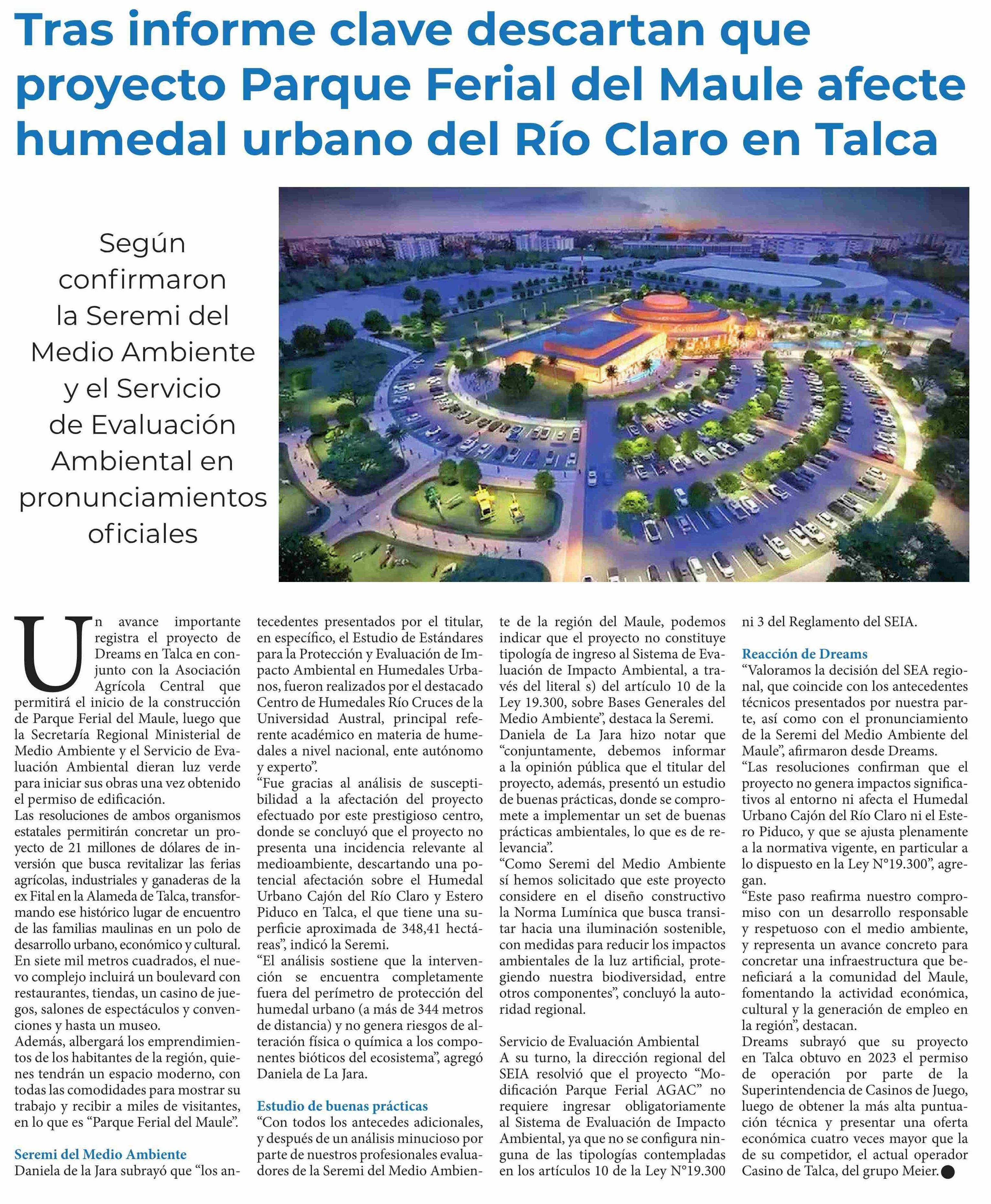 Tras informe clave descartan que proyecto Parque Ferial del Maule afecte humedal urbano del Río Claro en Talca 22-06-2025 Diario Talca |