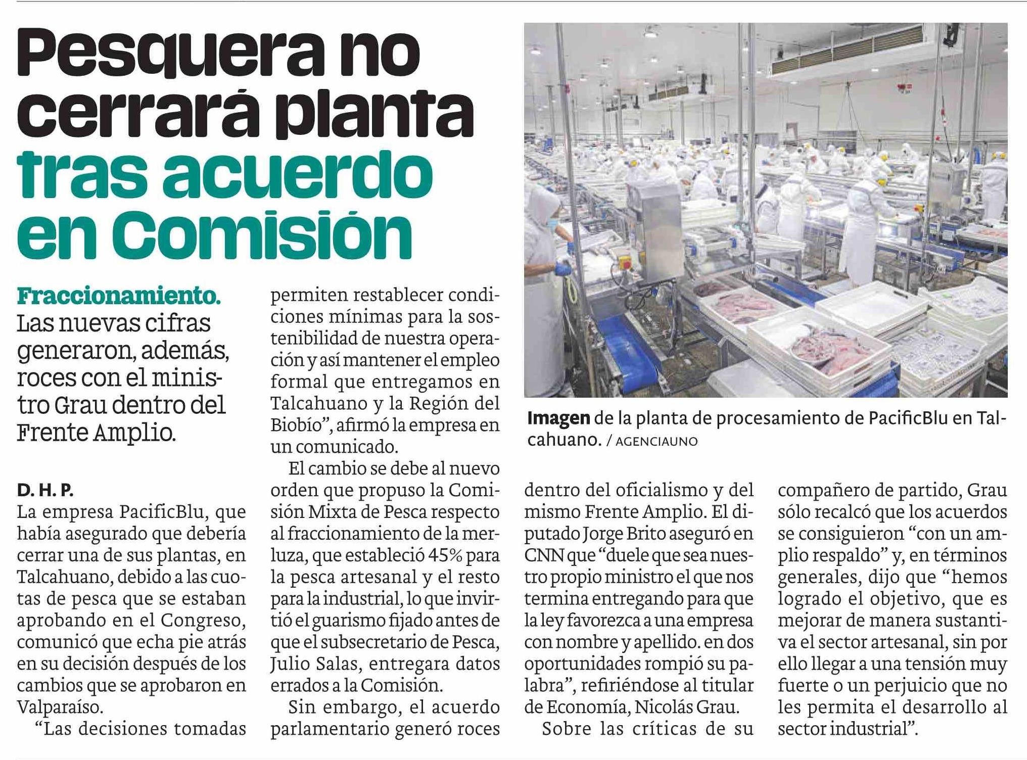 Pesquera no cerrará planta tras acuerdo en Comisión 06-06-2025 Publimetro |