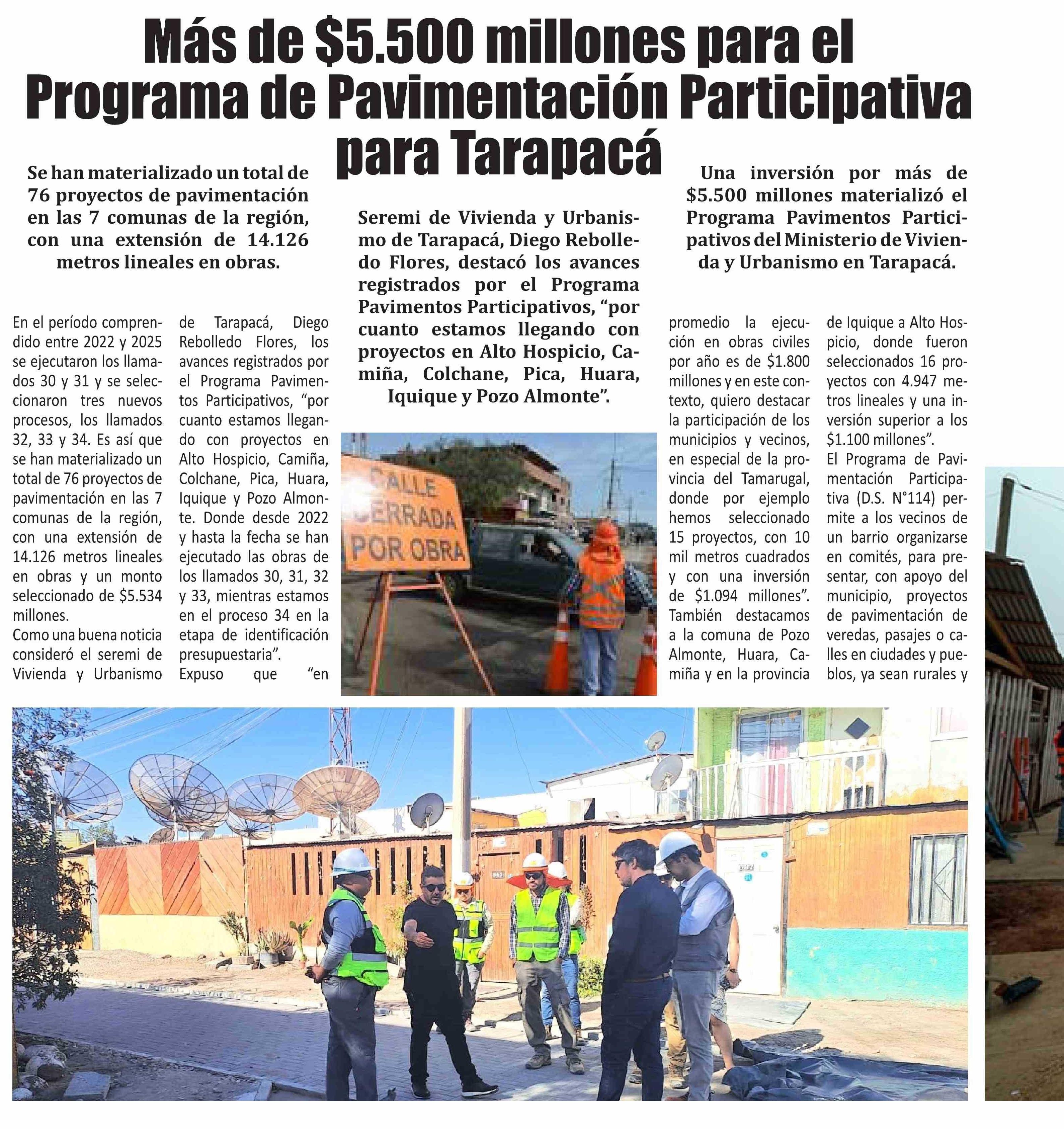 Más de $5.500 millones para el Programa de Pavimentación Participativa para Tarapacá 23-05-2025 El Longino |
