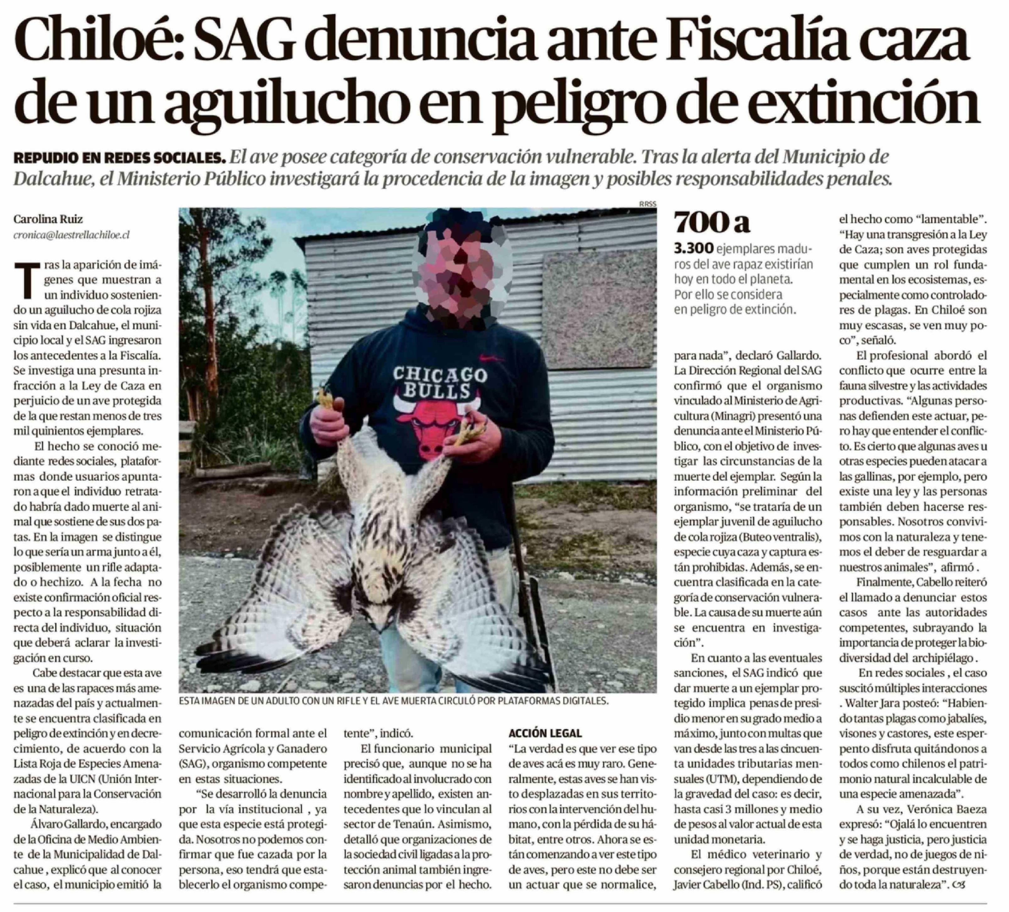 | Título: | Chiloé: SAG denuncia ante Fiscalía caza de un aguilucho en peligro de extinción |