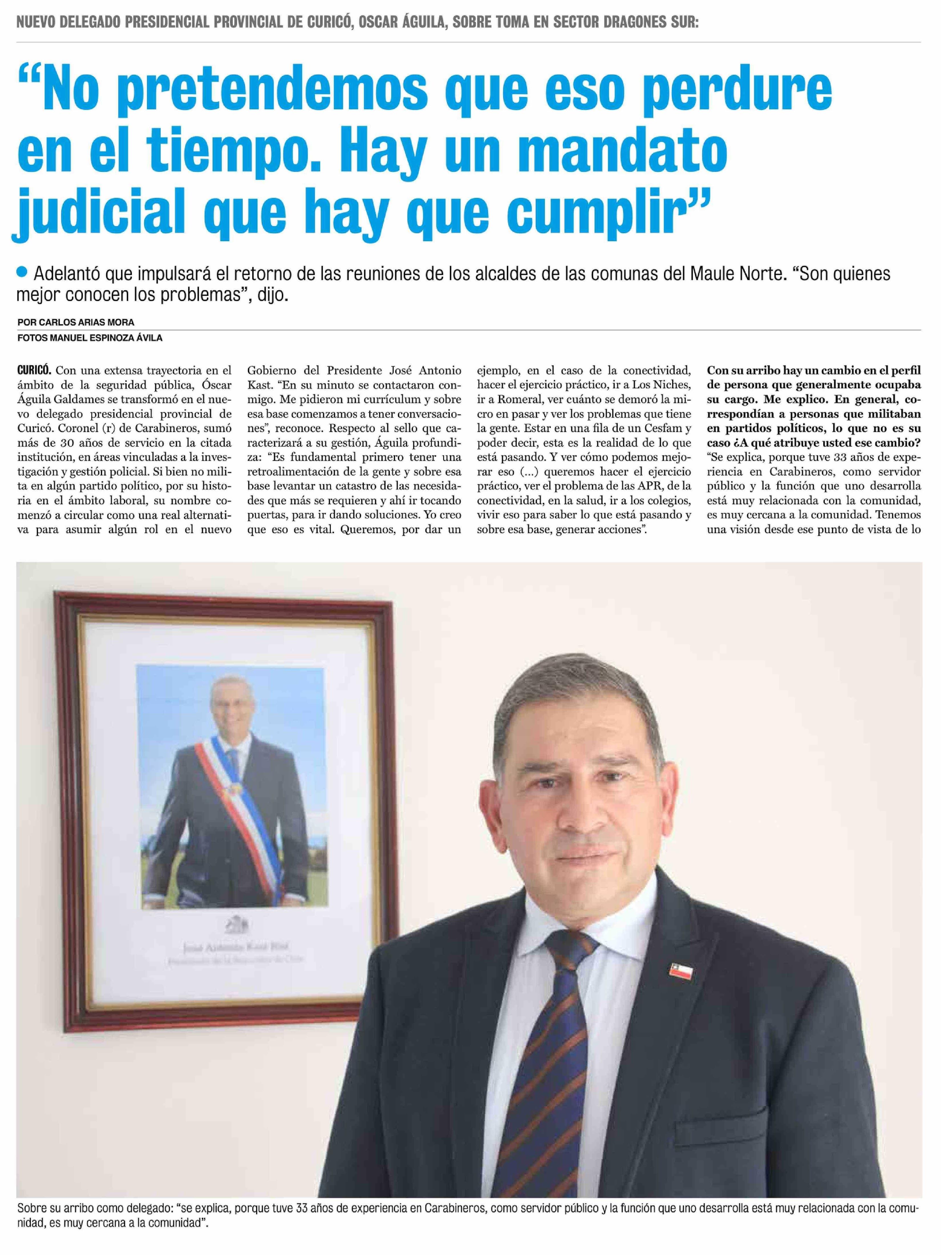 "No pretendemos que eso perdure en el tiempo. Hay un mandato judicial que hay que cumplir" 23-03-2026 La Prensa de Curicó |