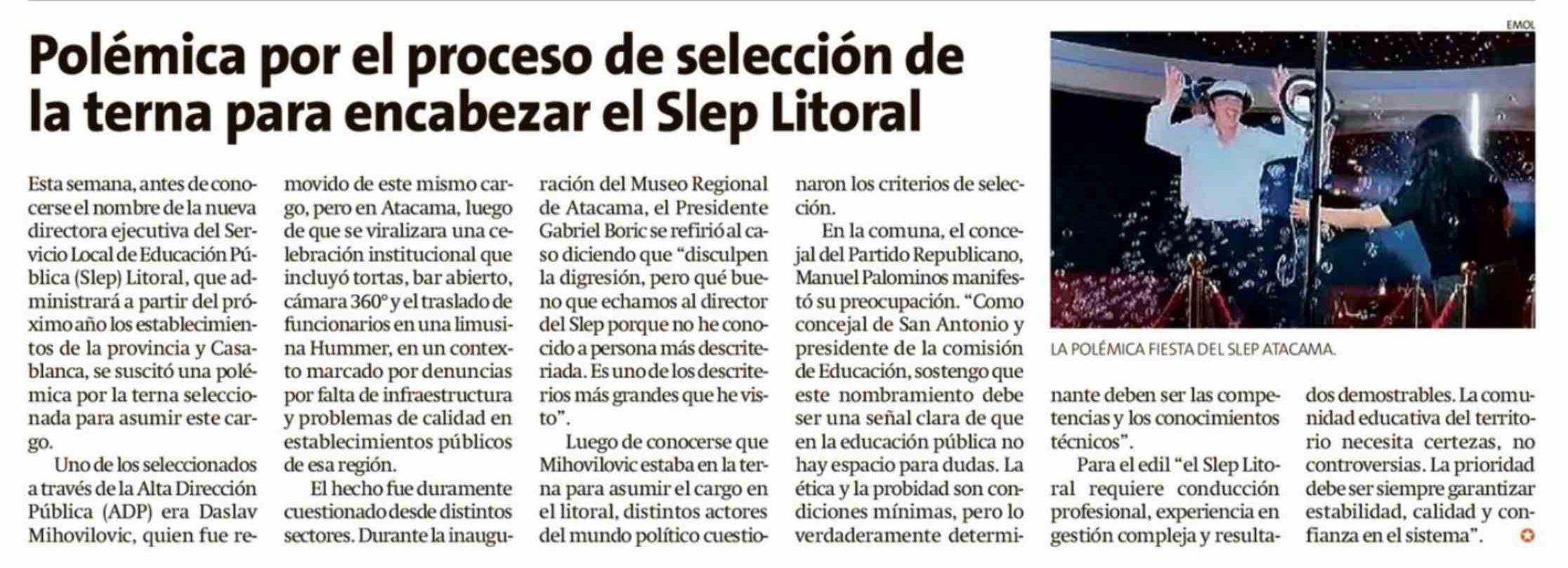 Título: Polémica por el proceso de selección de la terna para encabezar el Slep Litoral